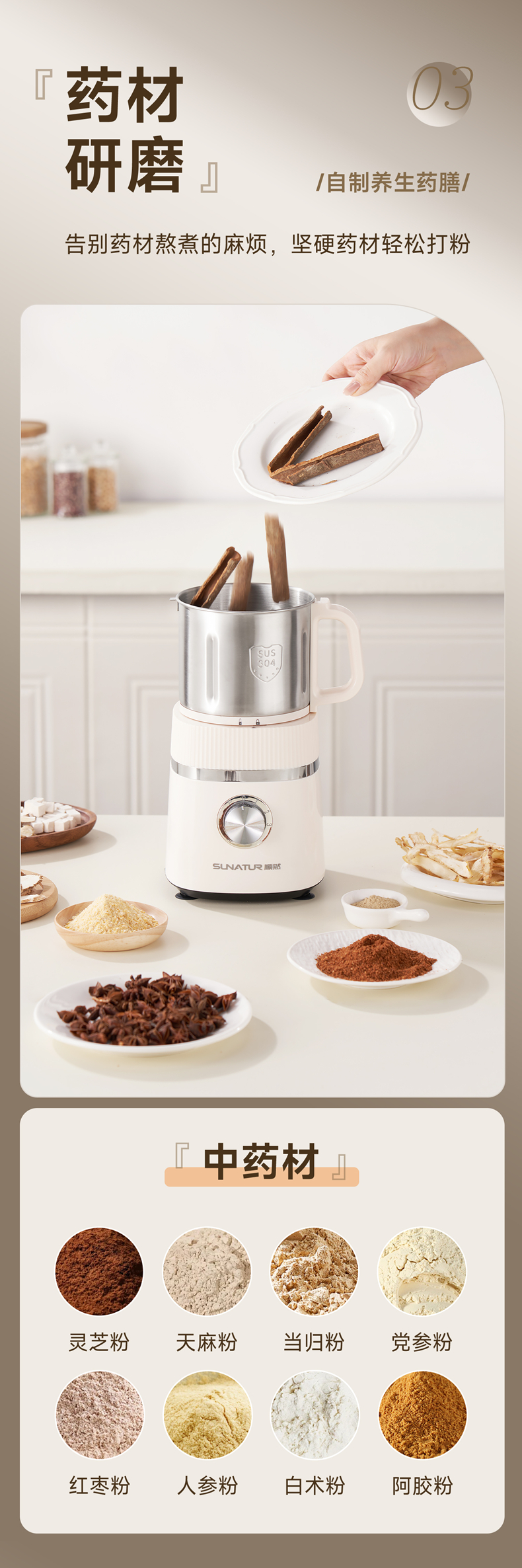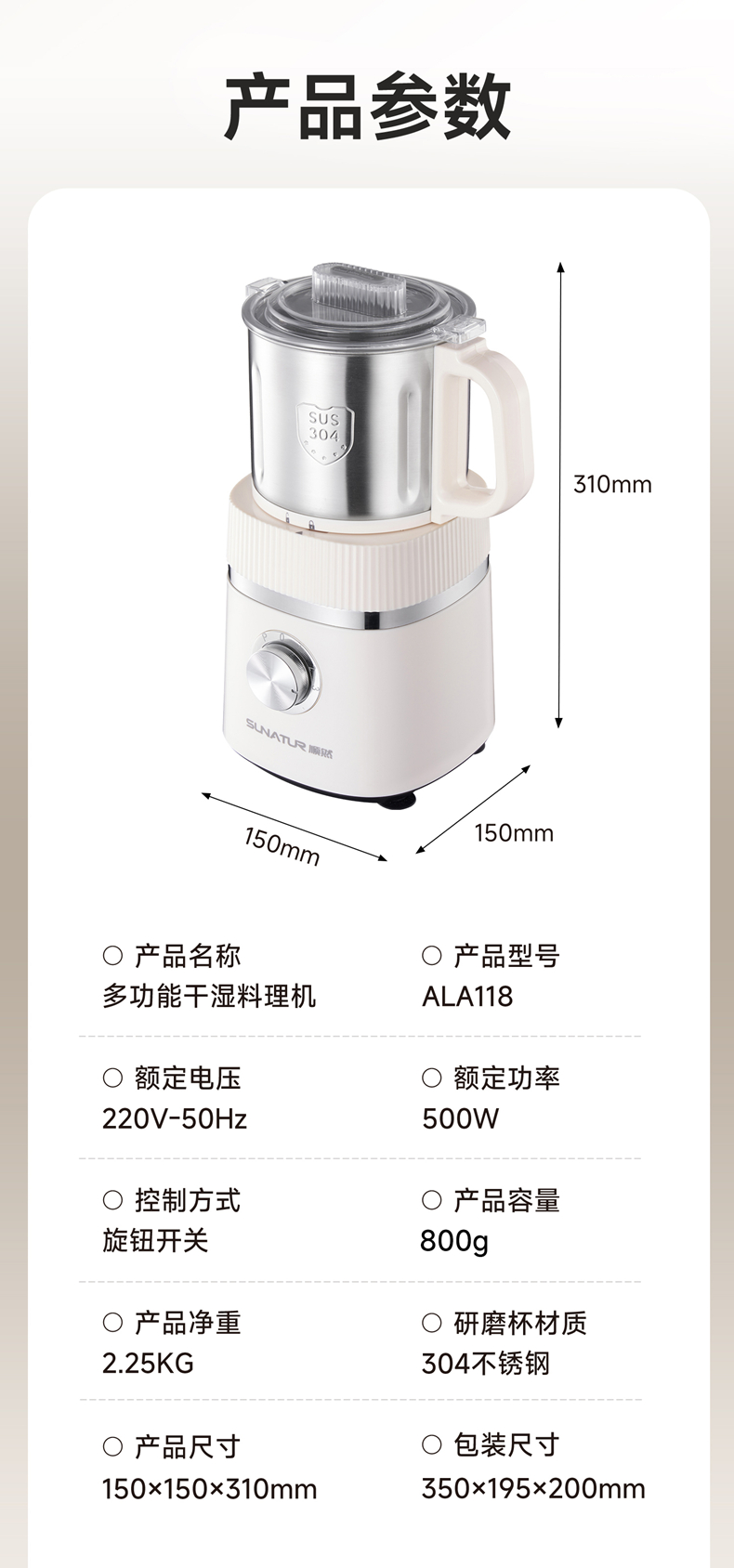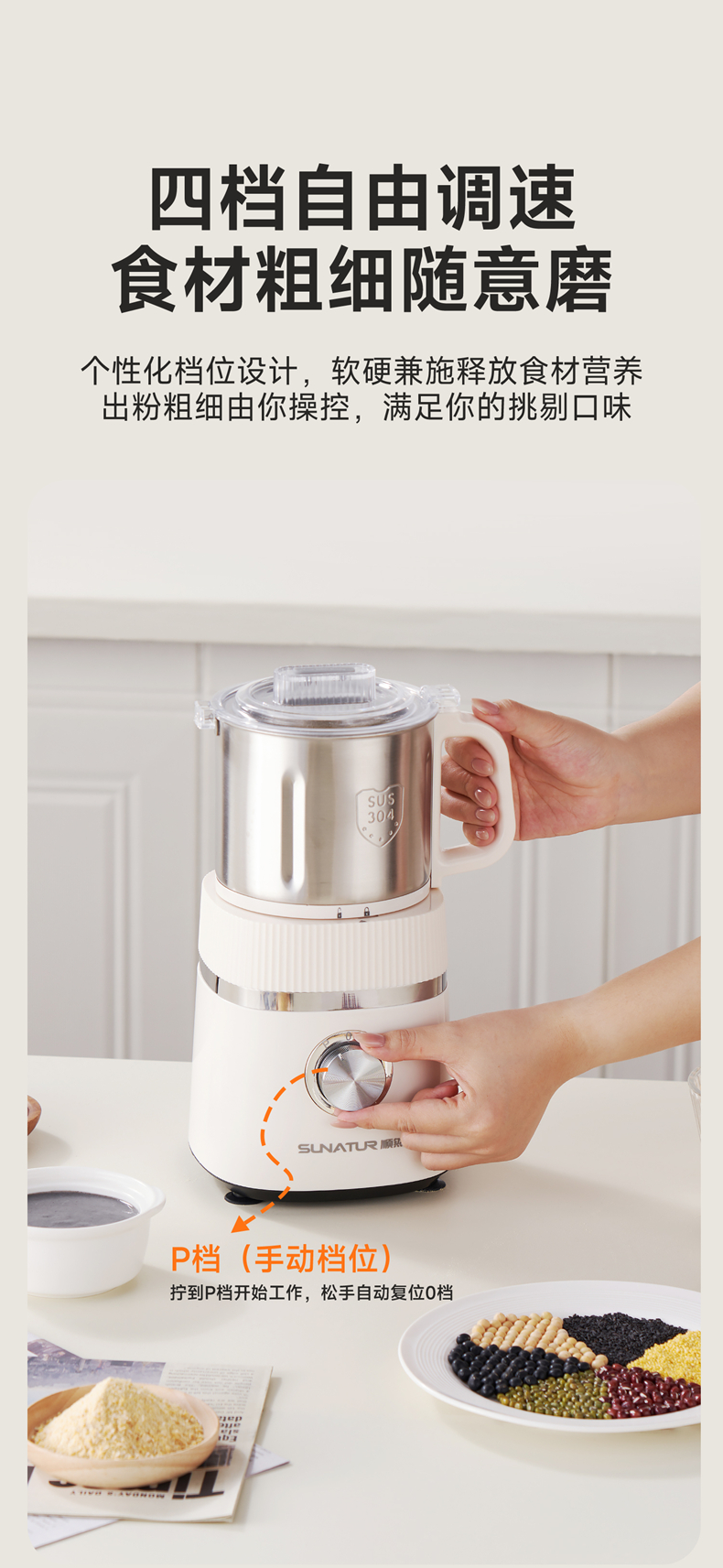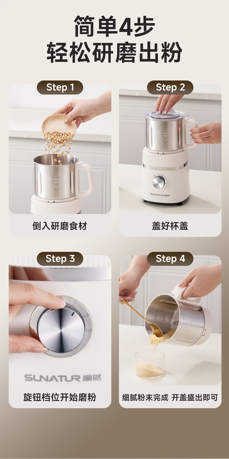 源头顺然(SUNATUR)ALA118 顺然高速精细磨粉机800ML 磨粉机家用五谷杂粮研磨打粉机小型中药材粉碎