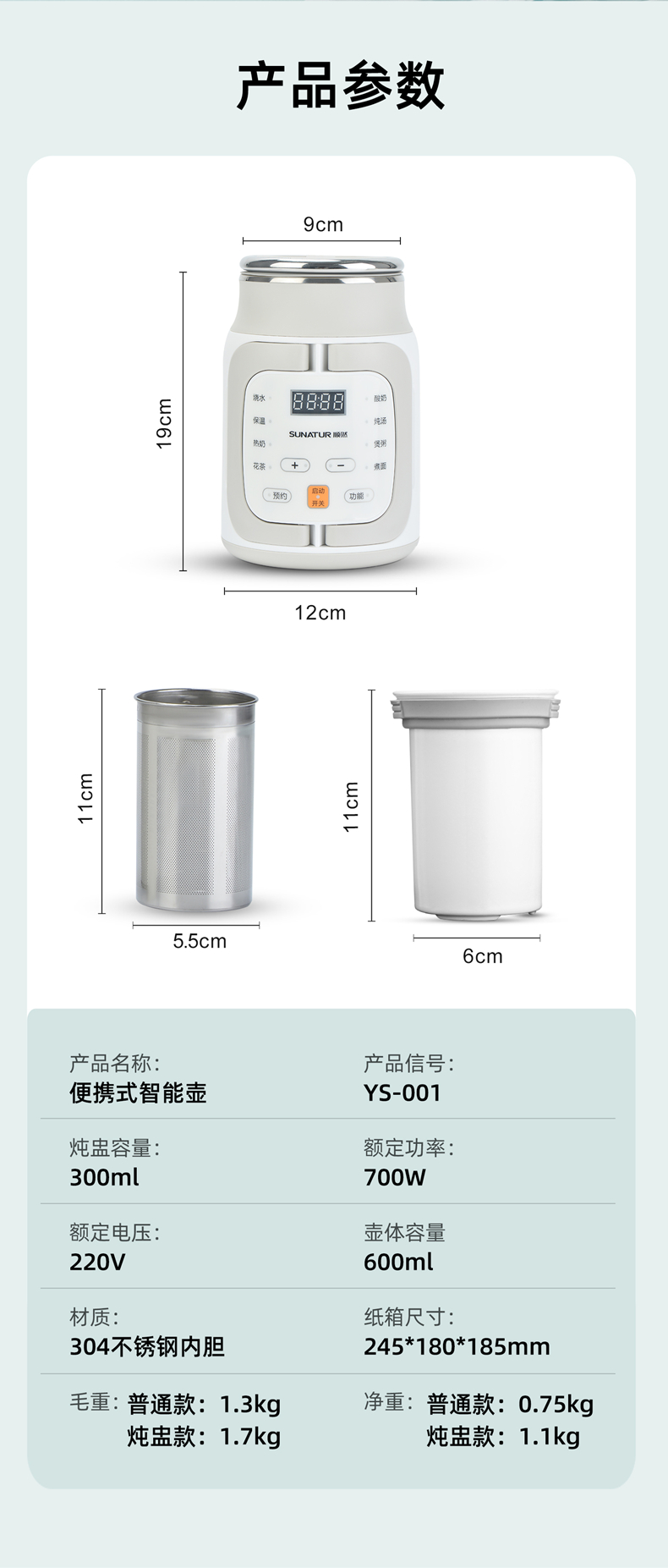 荐源头《顺然/SUNATUR》 YS-001 电煮壶