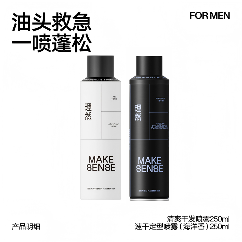 代发理然油头救急轻松造型2件套(清爽干发喷雾250ml+速干定型喷雾250ml)