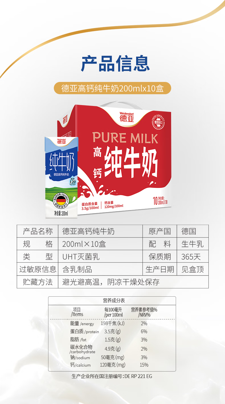 代发德亚高钙牛奶礼盒200ml*10