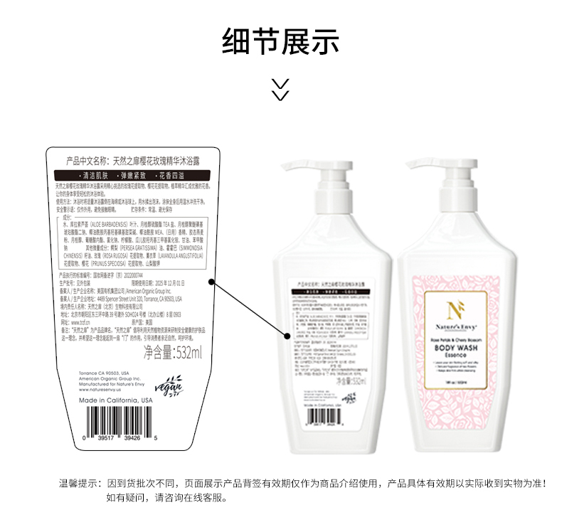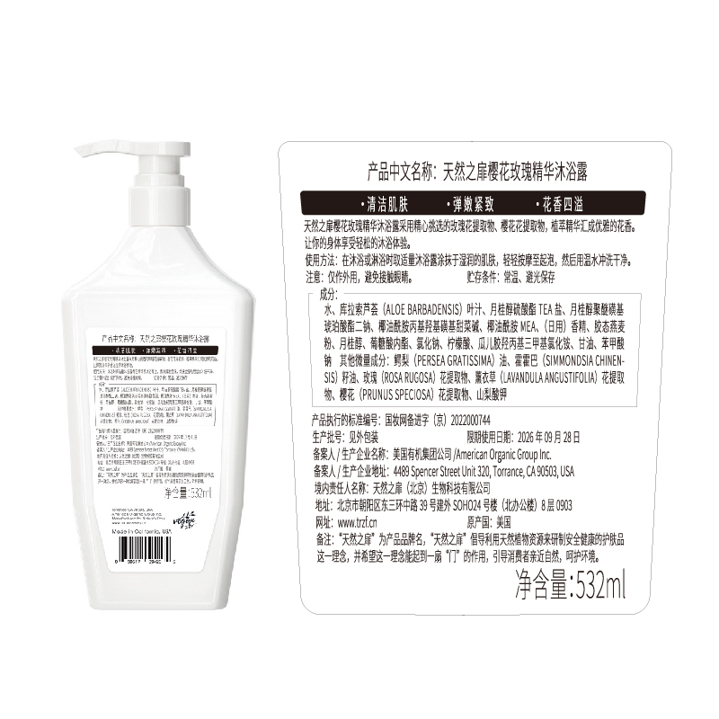 代发天然之扉樱花玫瑰精华沐浴露532mL
