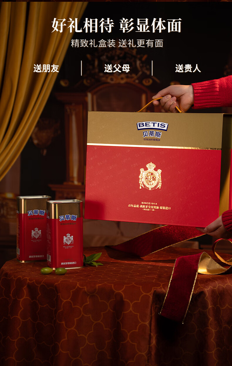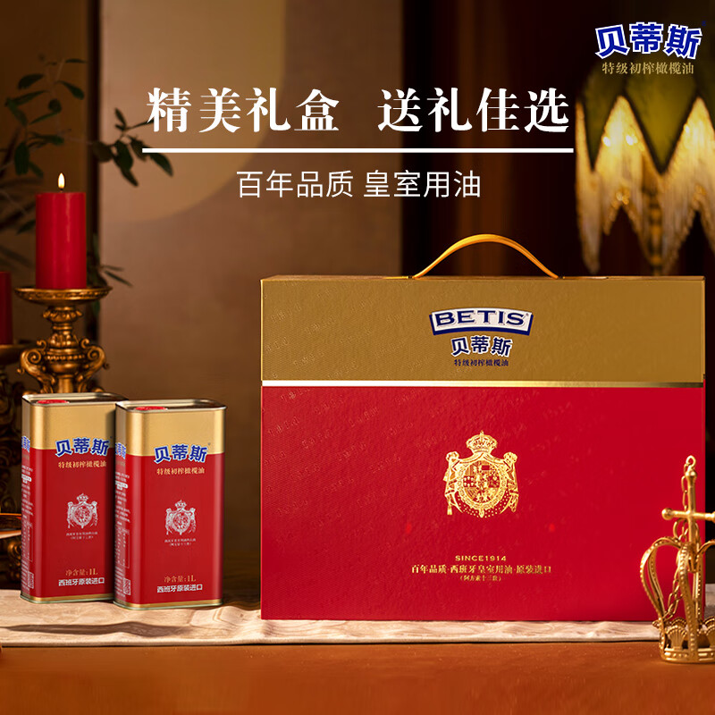 代发贝蒂斯(BETIS)【保真橄榄油】特级初榨橄榄油1L*2礼盒 西班牙原装进口