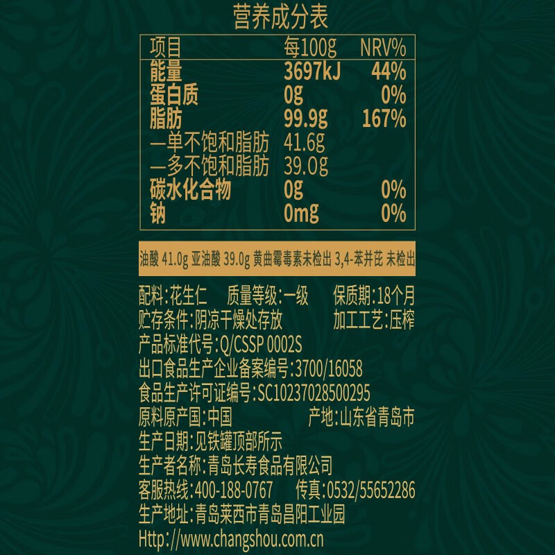 代发第一坊 原浆冷榨花生油1L铁罐装