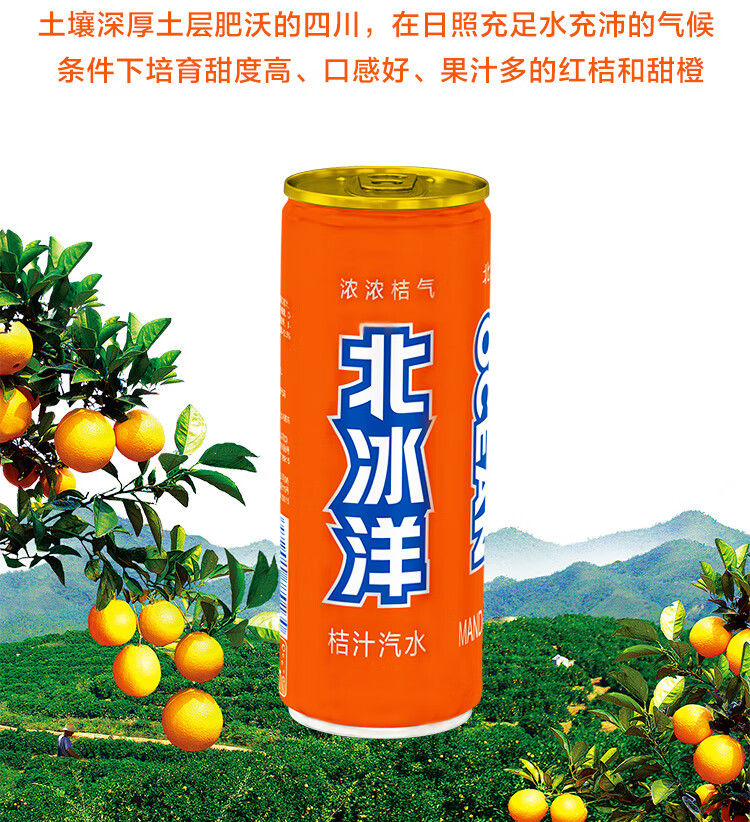 代发北冰洋 桔汁汽水330ml*24罐 果汁碳酸饮料整箱