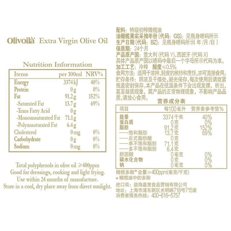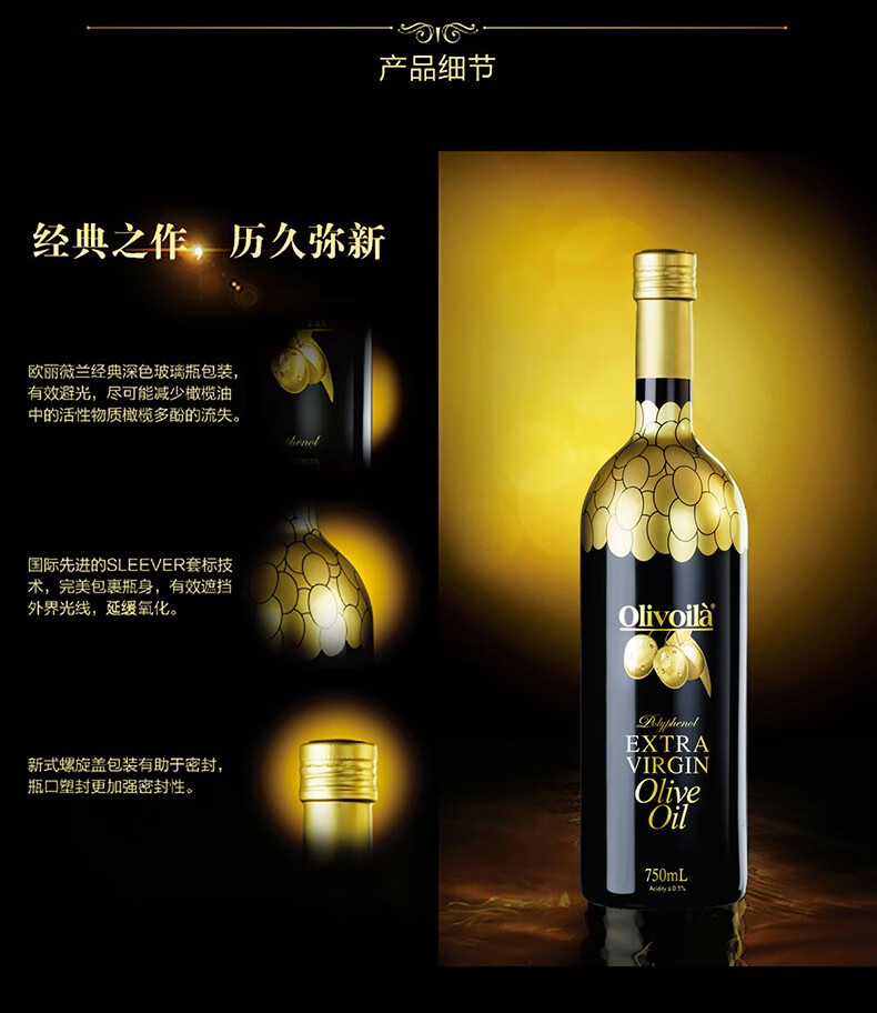 代发欧丽薇兰高多酚特级初榨橄榄油750ml*2金色简装礼盒装