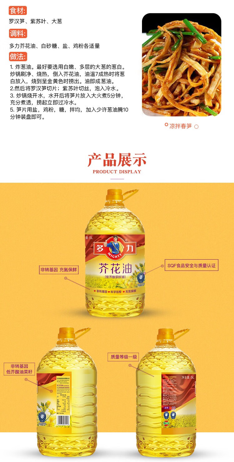 多力科学压榨一级充氮保鲜食用油芥花油5L