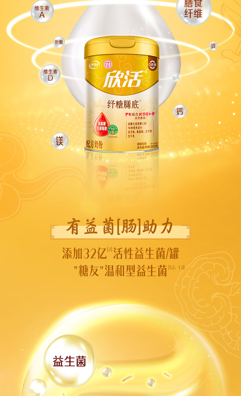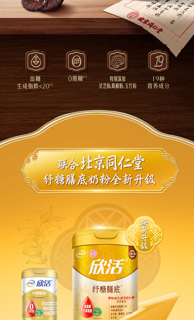 代发伊利欣活纾糖膳底配方奶粉(听装)(同仁堂联名)800g (糖尿病,高血糖可以喝)