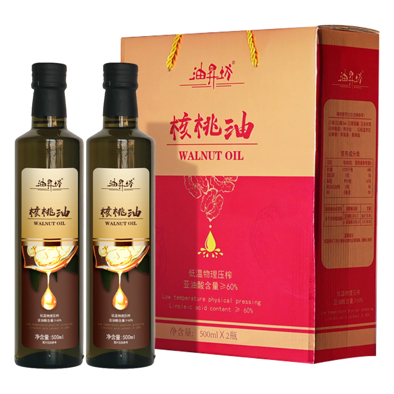 代发油昇坊冷榨核桃油礼盒装500ml*2