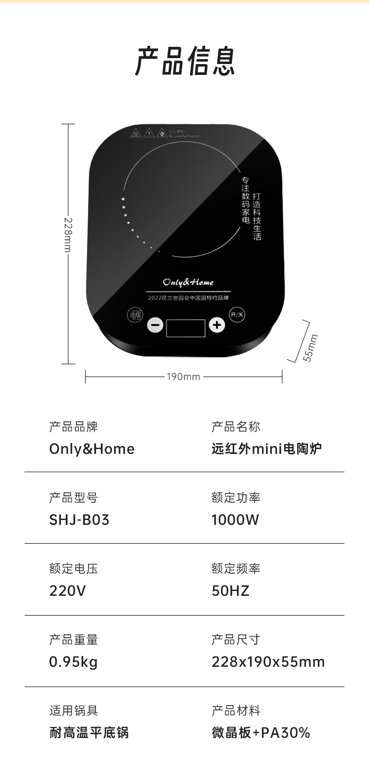 源头Only&Home远红外MINI电陶炉SHJ-B03