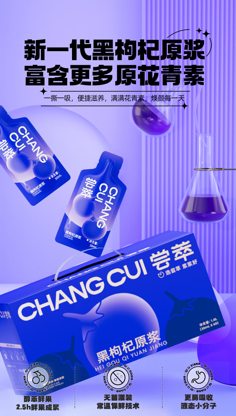 源头尝萃1.8L(60袋)量贩装黑枸杞原浆 0110048