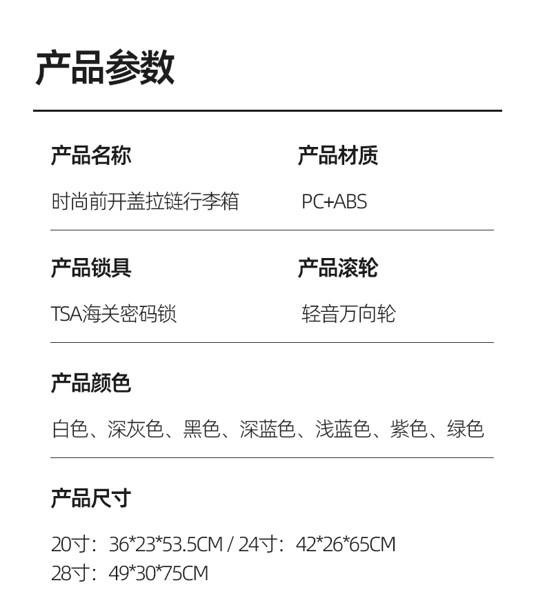 代发贝唯思前开盖行李箱登机箱杯架可充电拉链拉杆箱BWS26802 24英寸