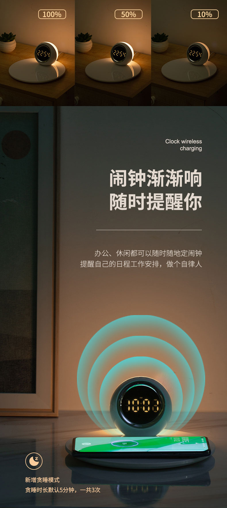 代发JIRUILIFE几锐创意无线充时钟氛围灯JR-K22T