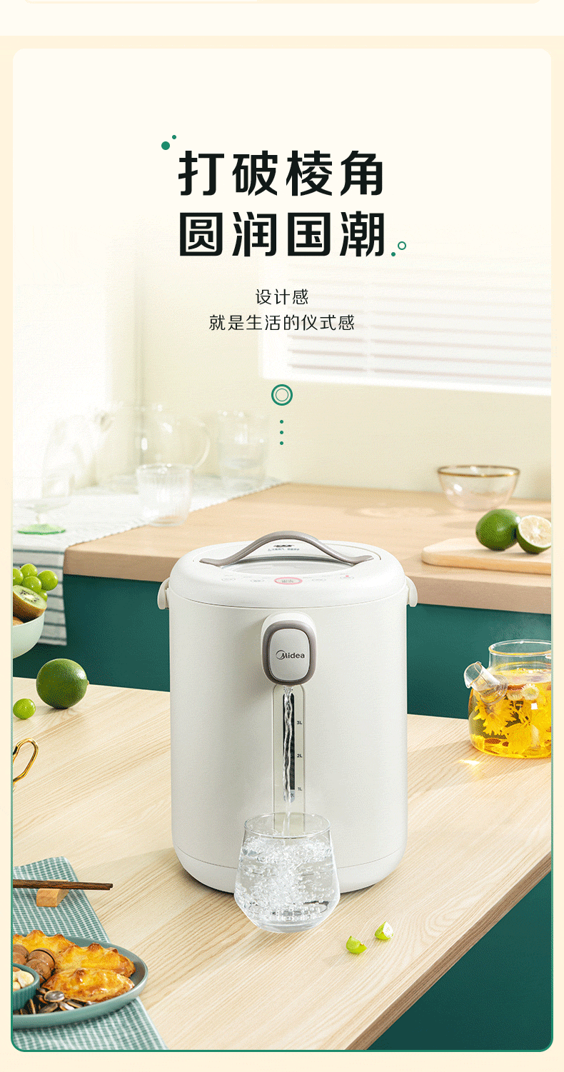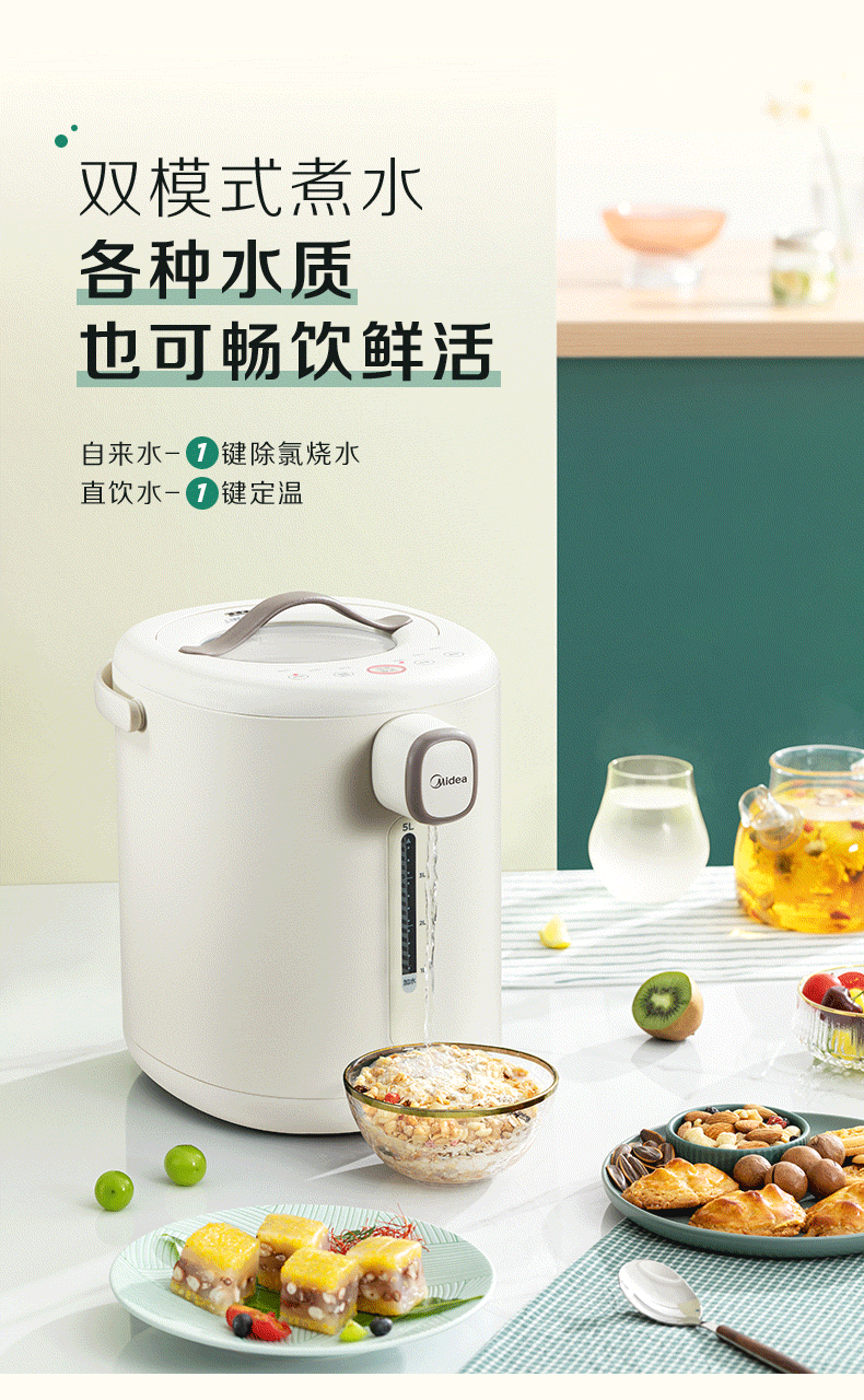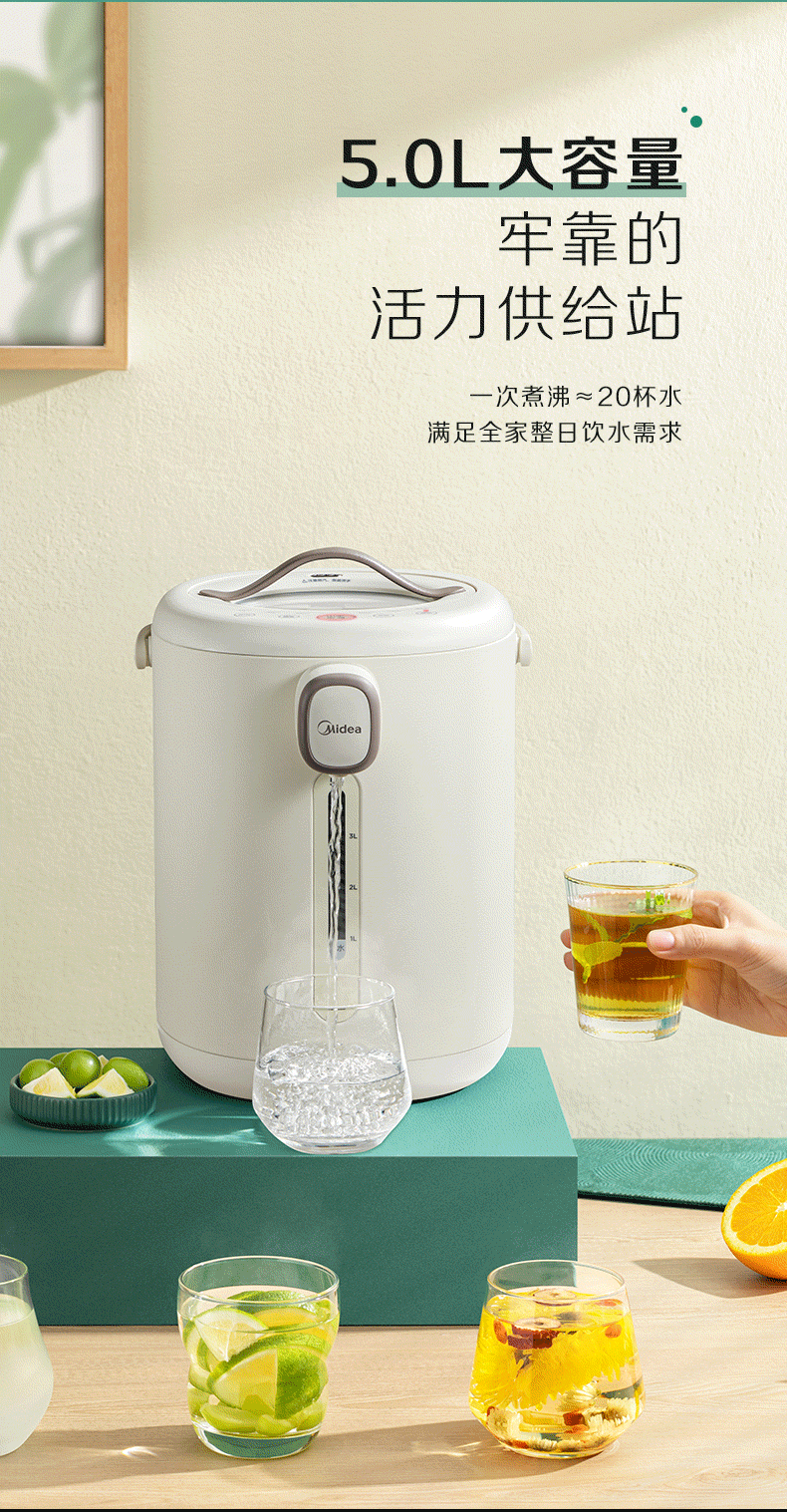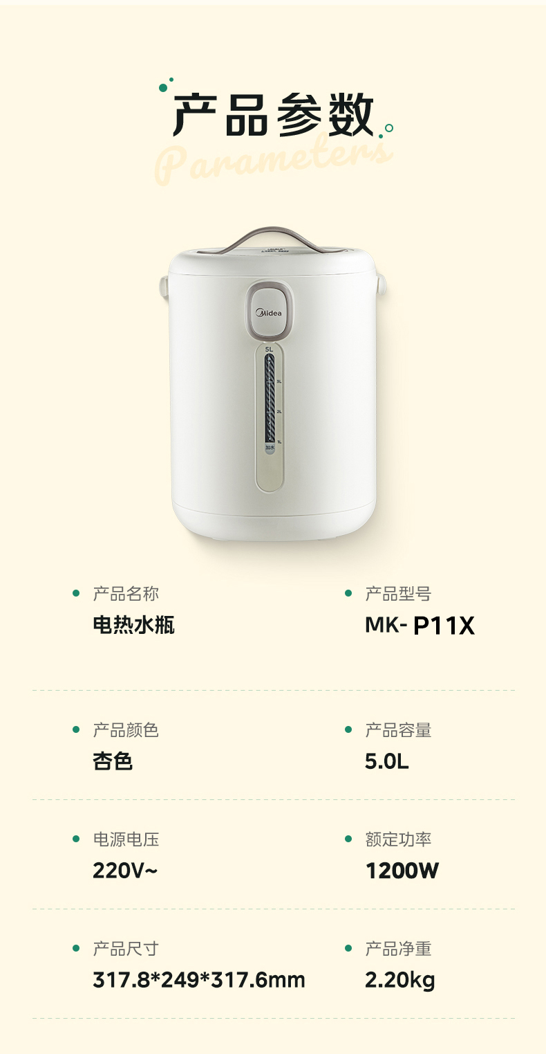 代发美的电水瓶 家用全自动多功能饮水机 保温泡茶壶 电水壶 5升大容量双层不锈钢水壶 MK-P11X 浅杏 5L