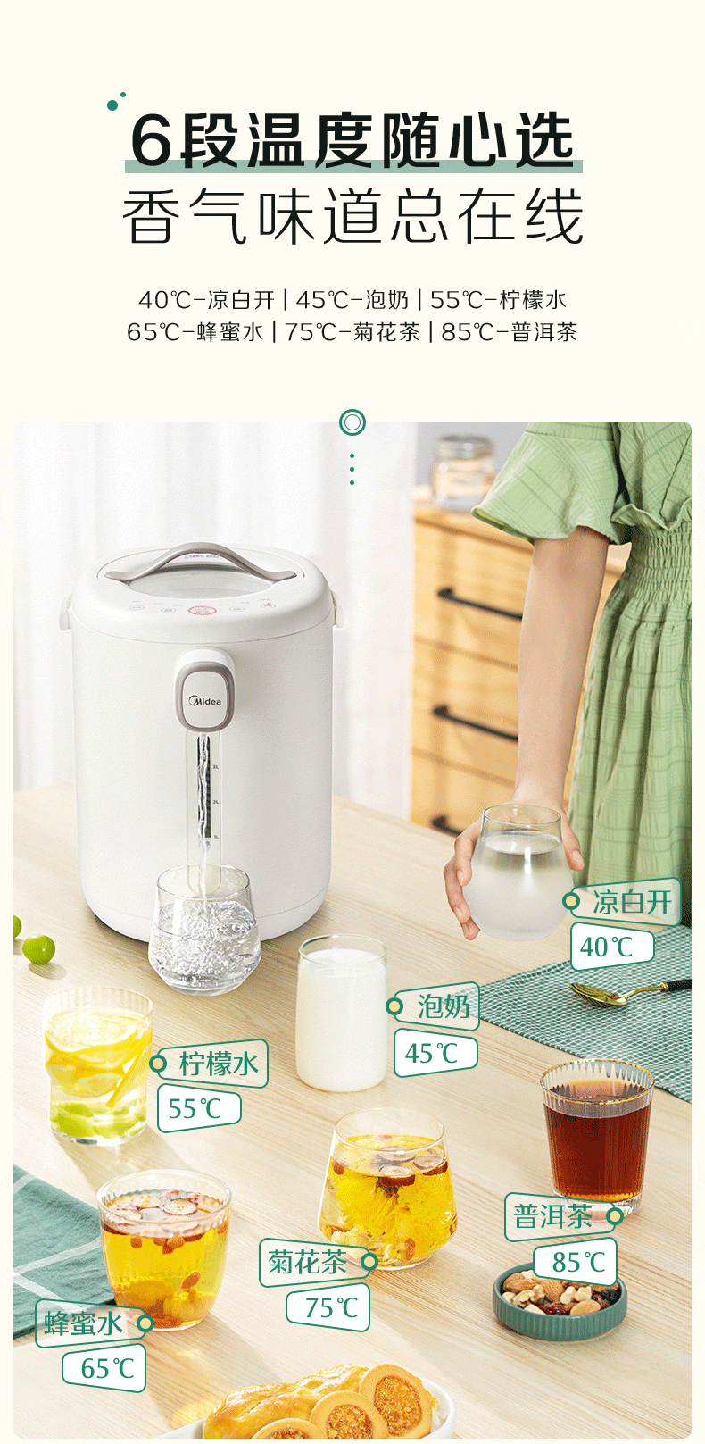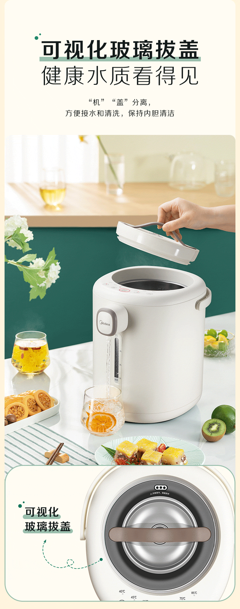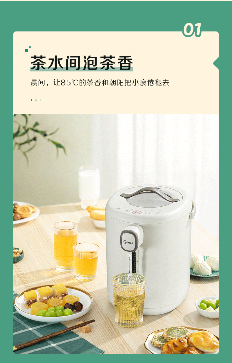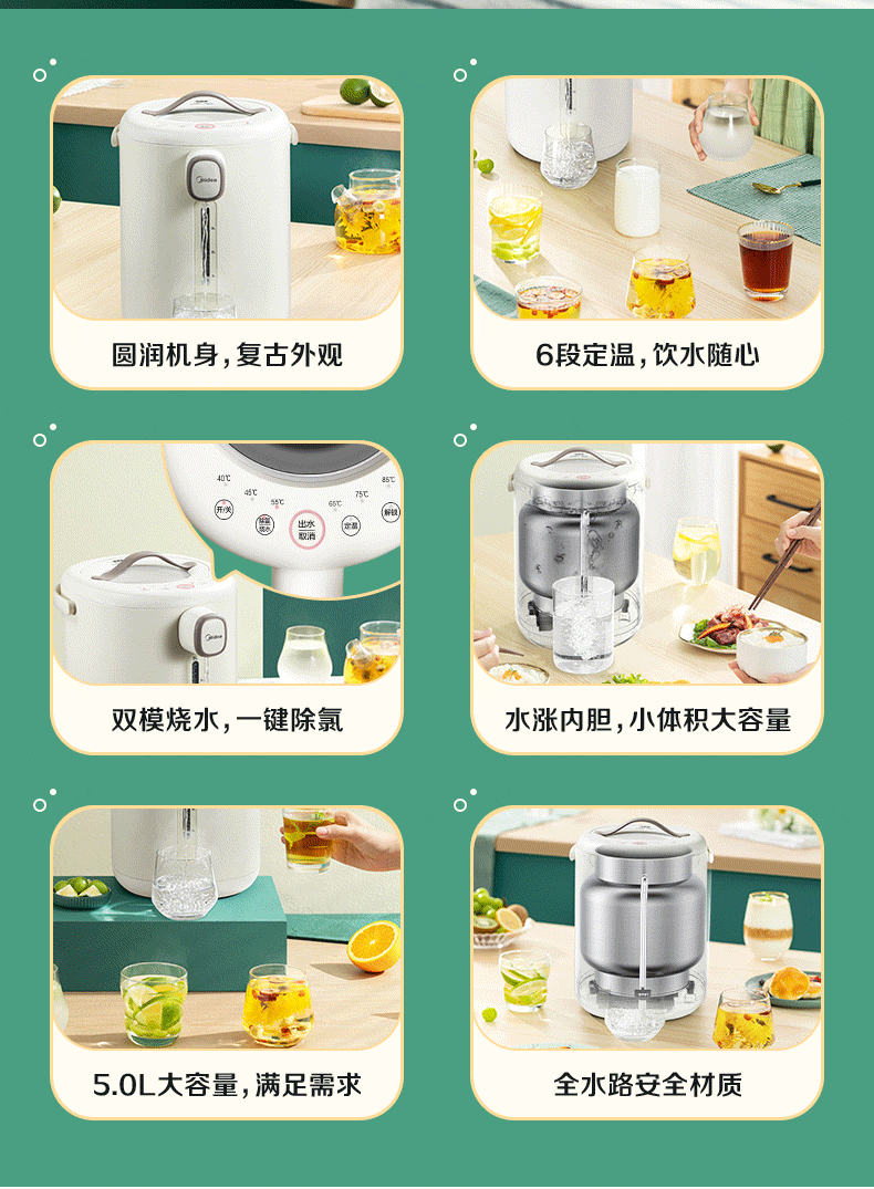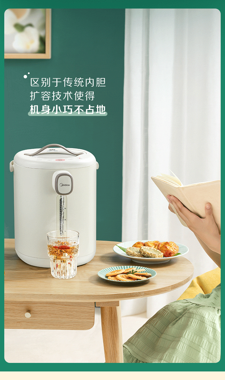代发美的电水瓶 家用全自动多功能饮水机 保温泡茶壶 电水壶 5升大容量双层不锈钢水壶 MK-P11X 浅杏 5L