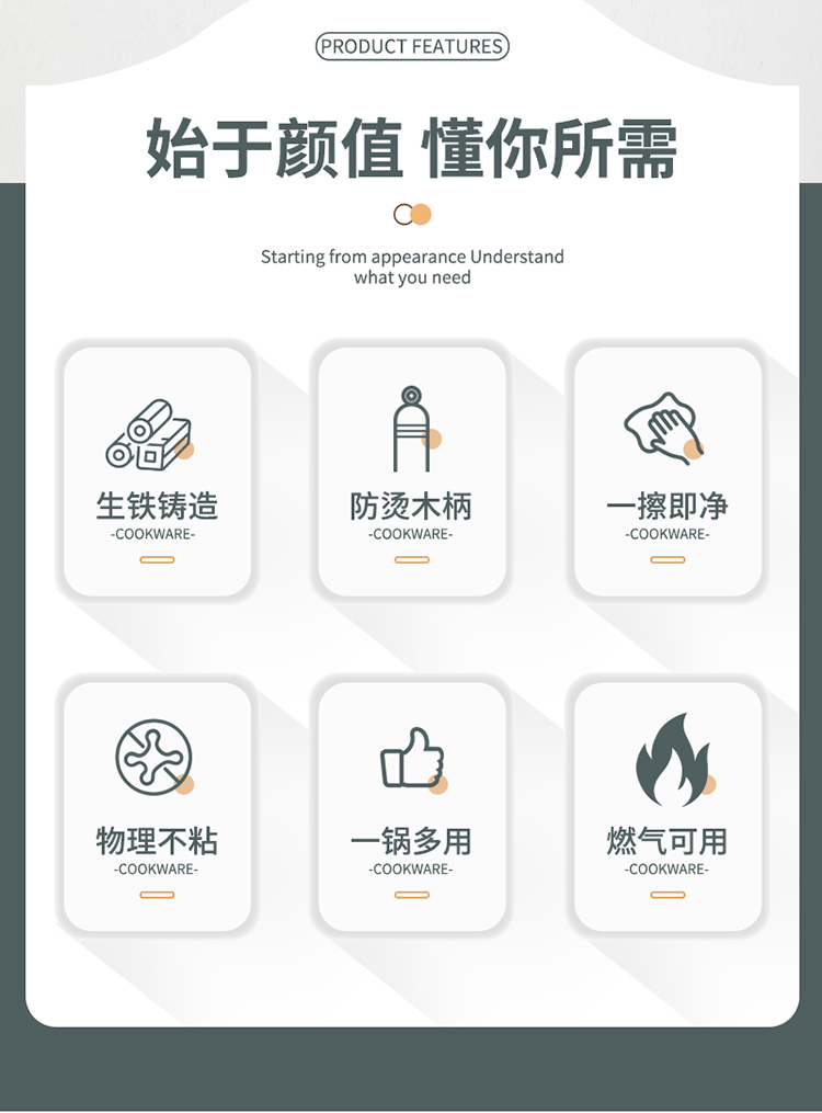 代发华典世通 HDST 新品墨韵系列锅具 生铁不粘锅 早餐锅 煎锅通用炉灶 墨韵煎锅 23cm
