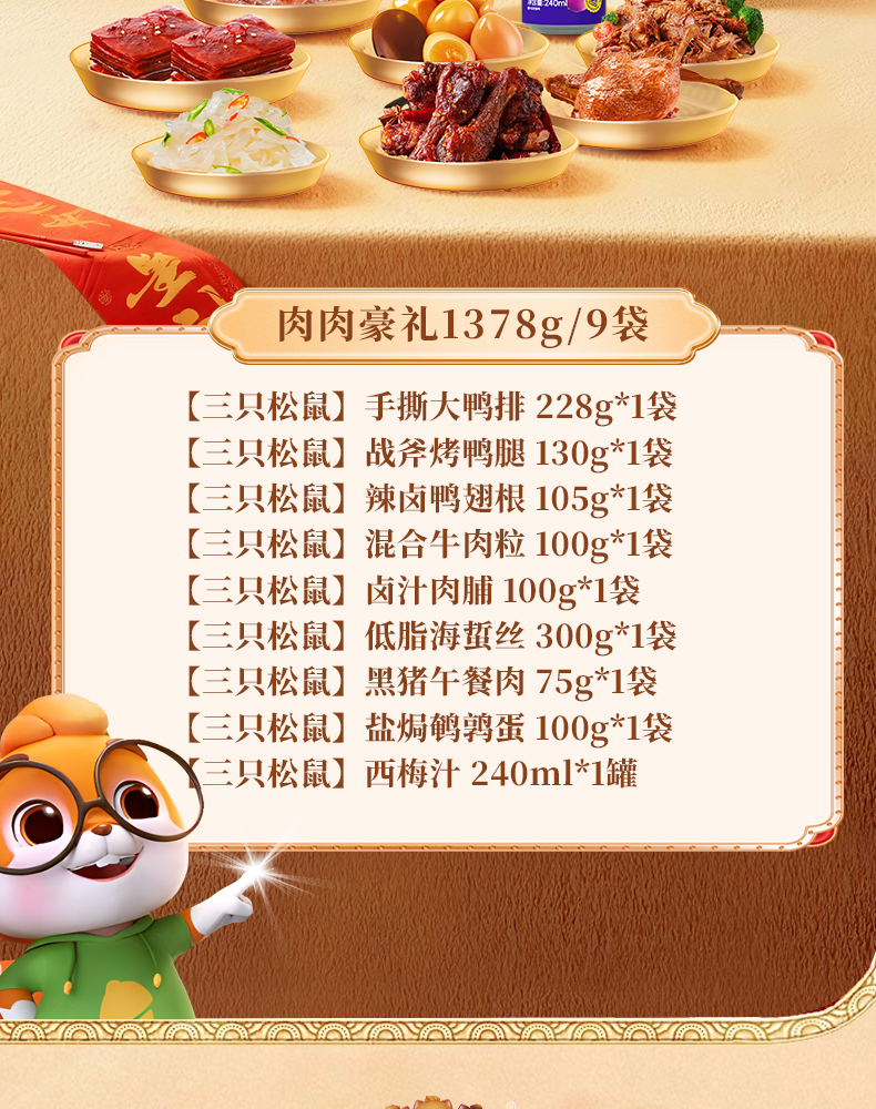 当前位置:首页 > 食品饮料 > 休闲食品 > 肉干肉脯 > 三只松鼠肉肉豪礼1378g