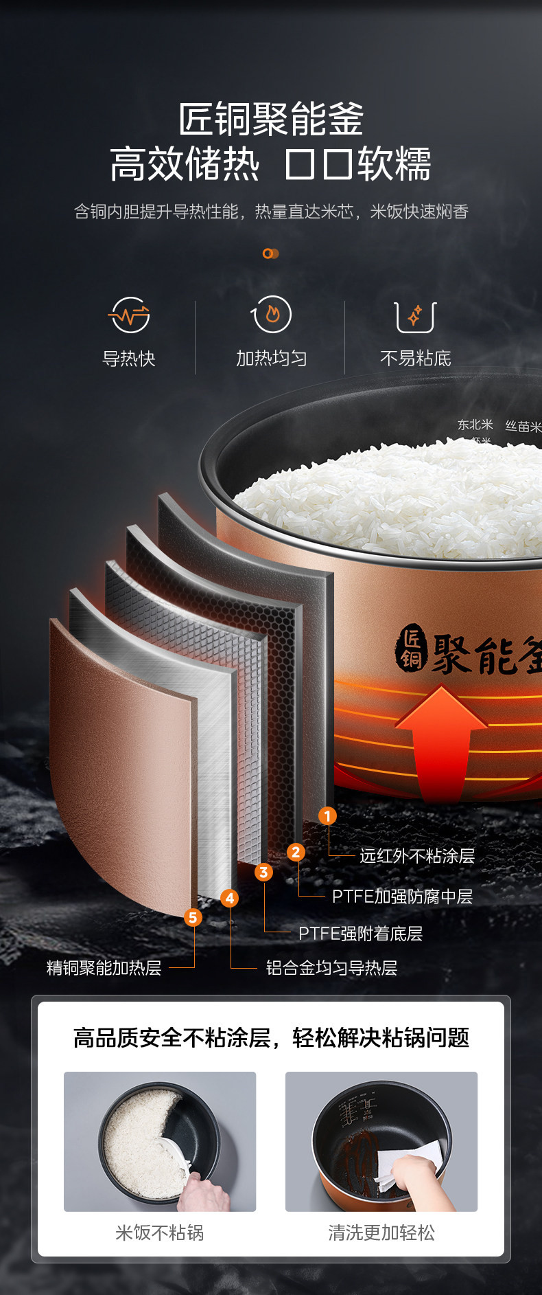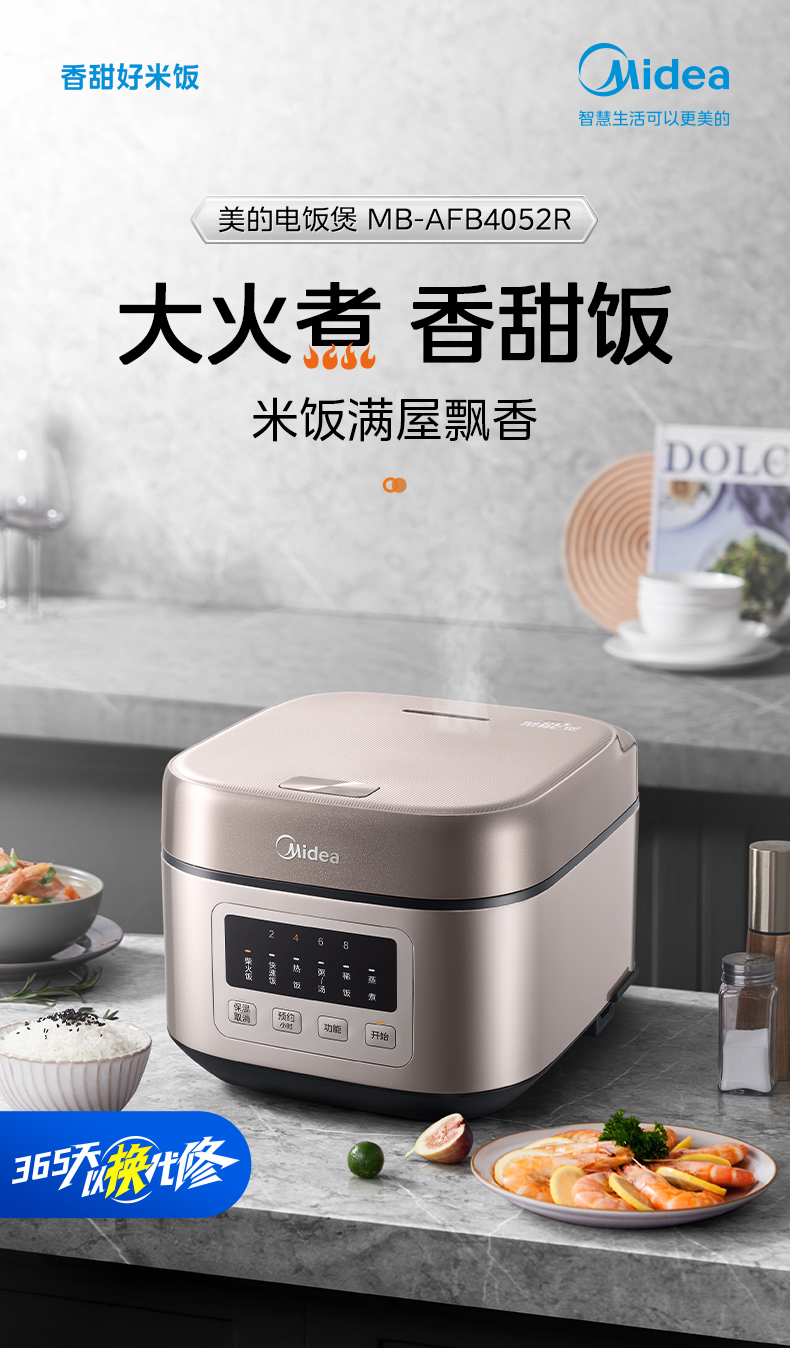 代发美的电饭煲4L匠铜聚能釜内胆隐藏式微压焖香阀 智能预约电饭锅MB-AFB4052R