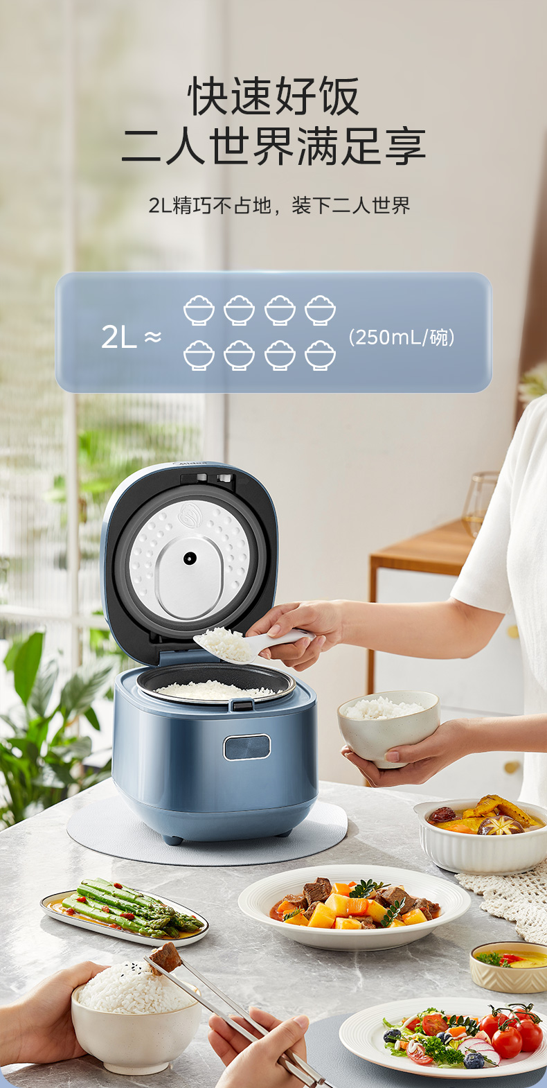 代发美的 低糖电饭煲2L家用迷你饭煲匠银聚能釜9大菜单功能煮饭锅24小时预约MB-AFB2024R