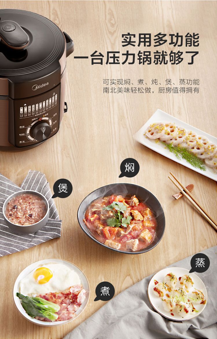 当前位置:首页 > 家用电器 > 厨房小电 > 电压力锅 > 美的电饭煲 家用5L双胆大容量电压力煲智能电高压锅 MY-YL50M132
