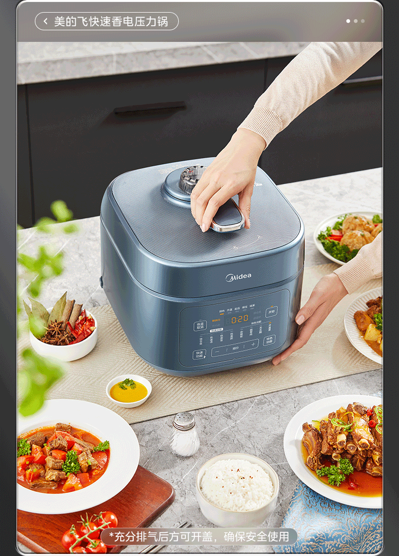 代发美的(Midea)5L电压力锅1300W大功率8分钟快手菜无水料理一锅双胆高压锅MY-C5147【ZMD安心系列】