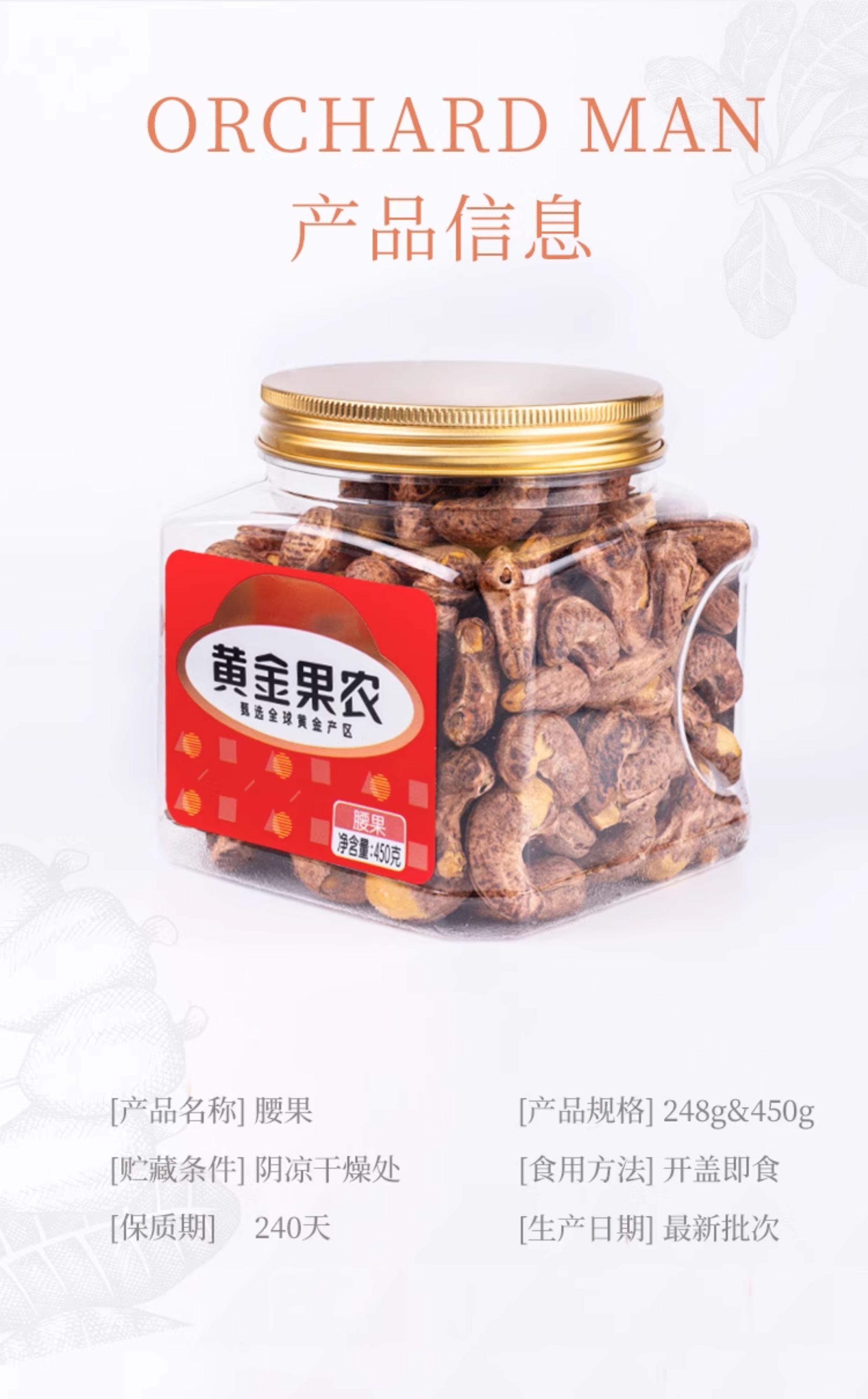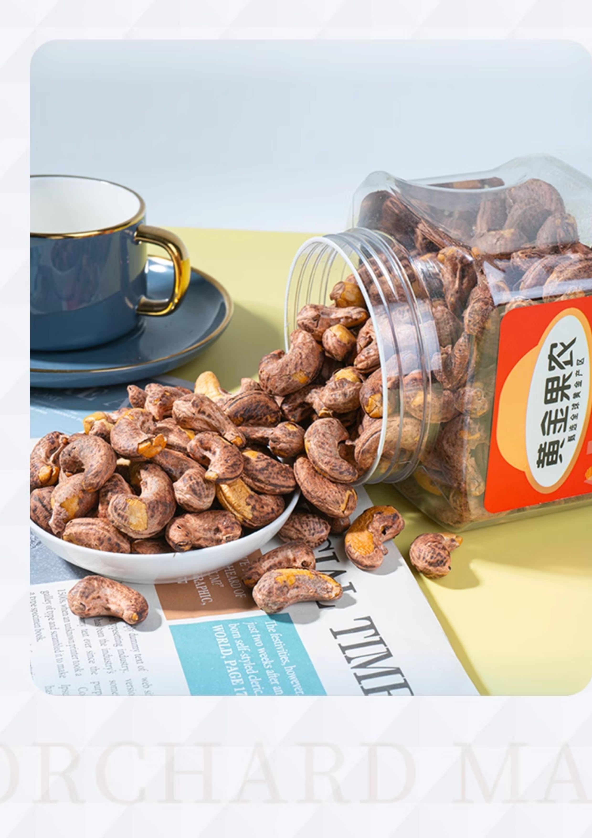 代发黄金果农紫皮腰果坚果仁带皮盐焗大干果健康零食罐装450克