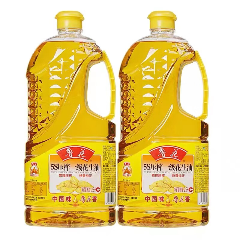 代发鲁花 食用油 5S压榨一级花生油2.5L*2桶 礼盒装