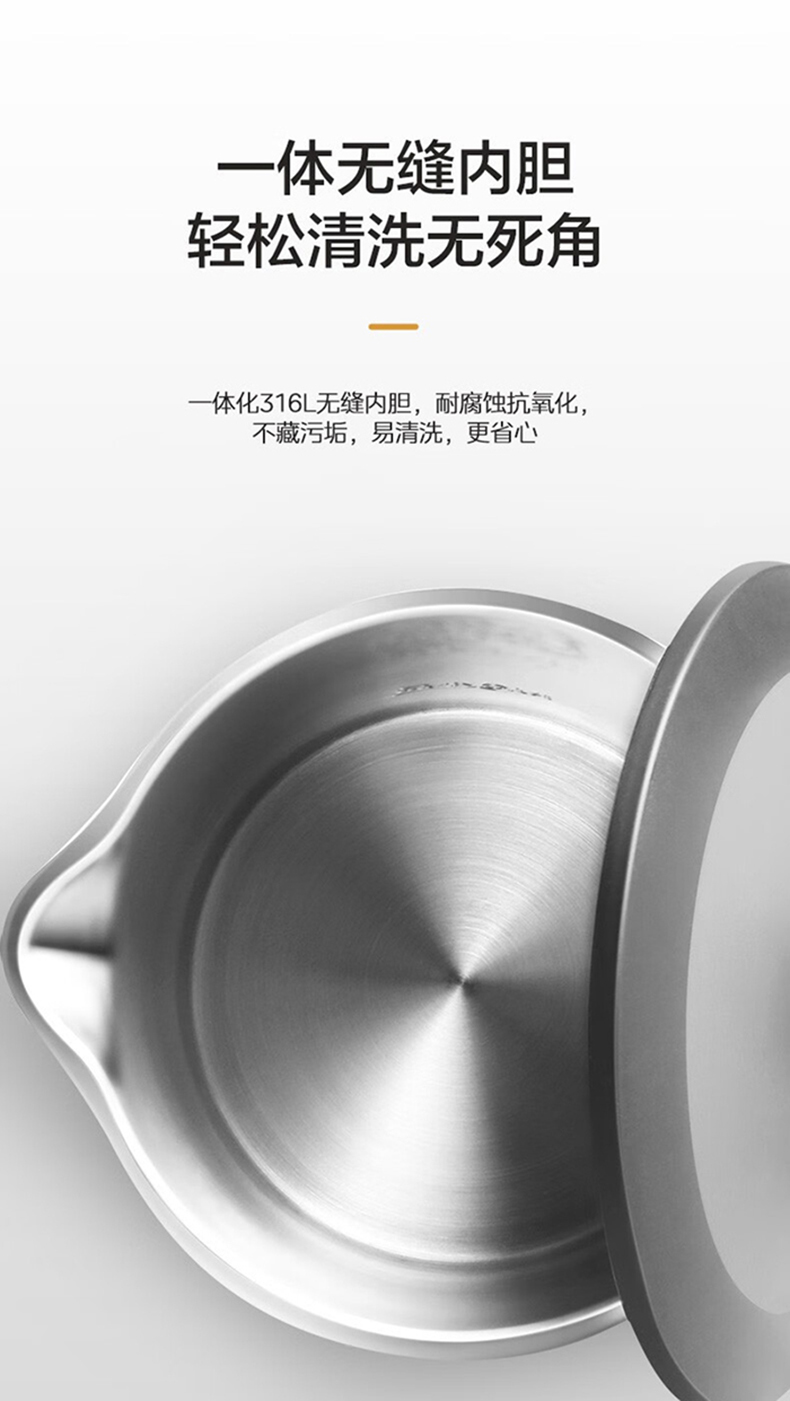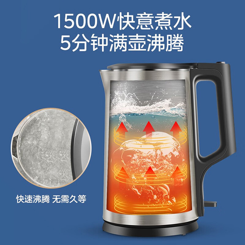 代发美的 电水壶家用烧水壶1.7升双层防烫防干烧316不锈钢电热水壶MK-PJ17A01 1.7L 大容量