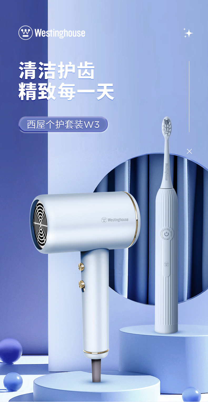 代发西屋(Westinghouse)吹风机电动牙刷套装家用吹风筒负离子护发声波牙刷美白牙齿 个护套装W3