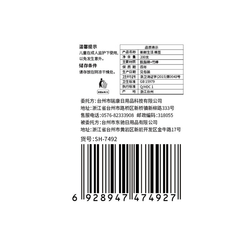 源头新鲜生活棉签(大圆形)*5桶SH-7492-5