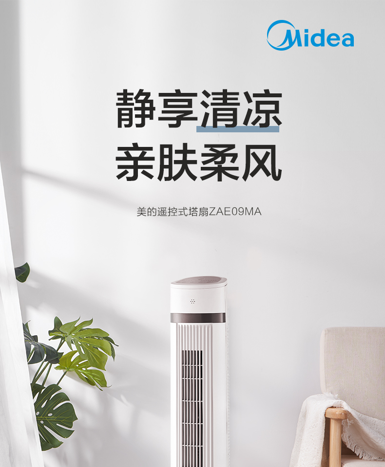代发美的电风扇落地扇塔扇广角大风量低噪节能无叶风扇小型可定时 ZAE09MA