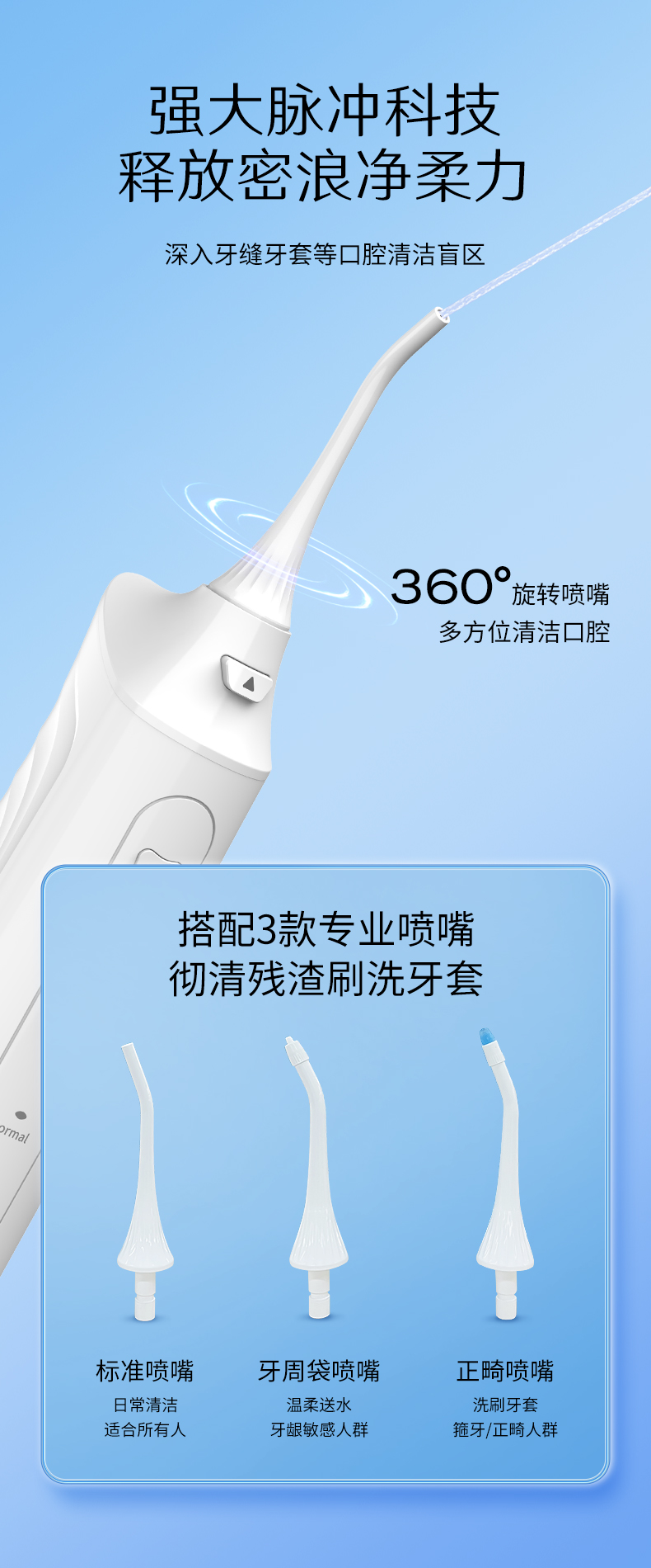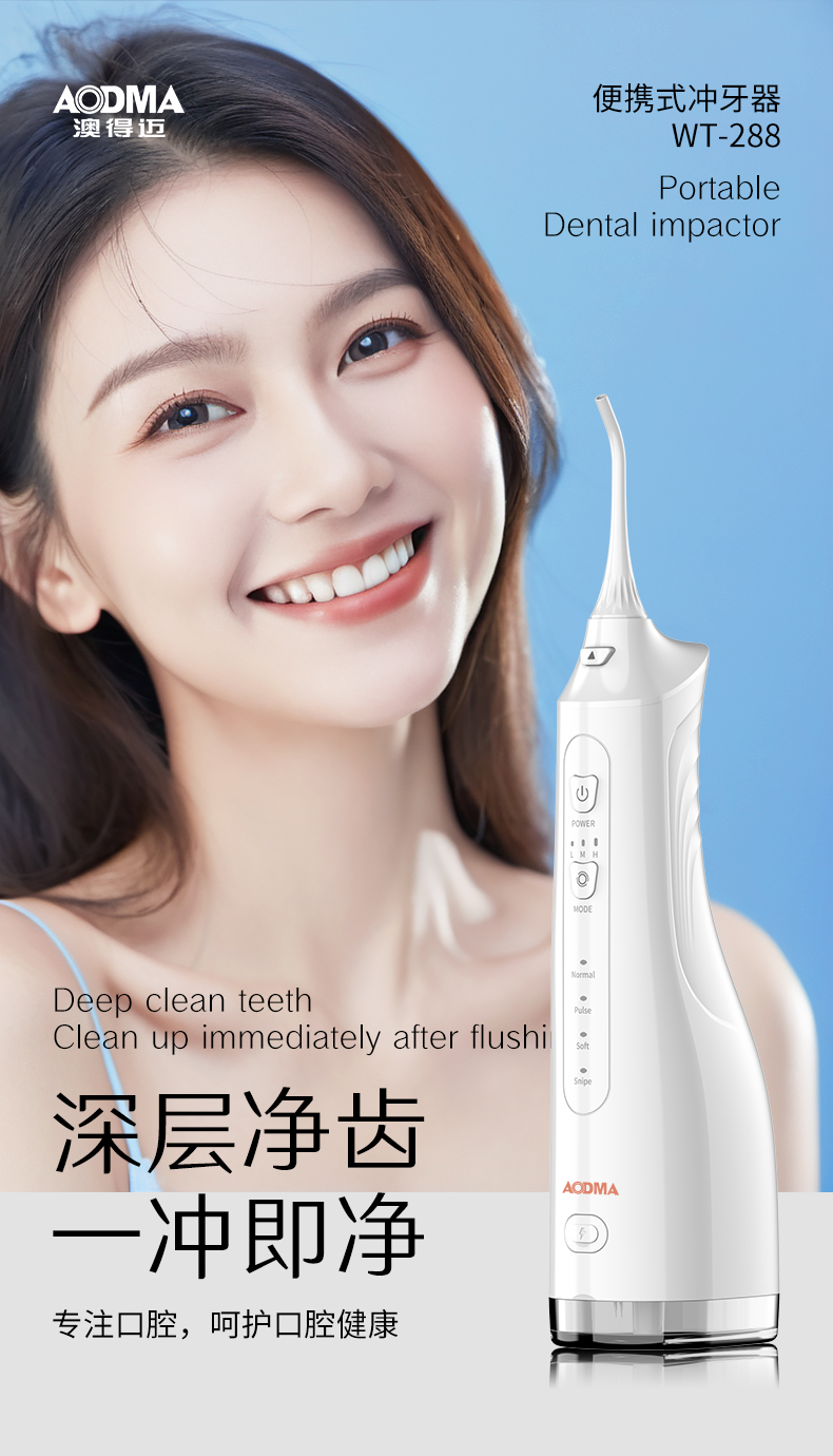 代发澳得迈(AODMA)手持冲牙器 家用水牙线电动声波去除超正畸专用牙齿清洁洗牙神器 送女男朋友WT-288 白色 3支喷头