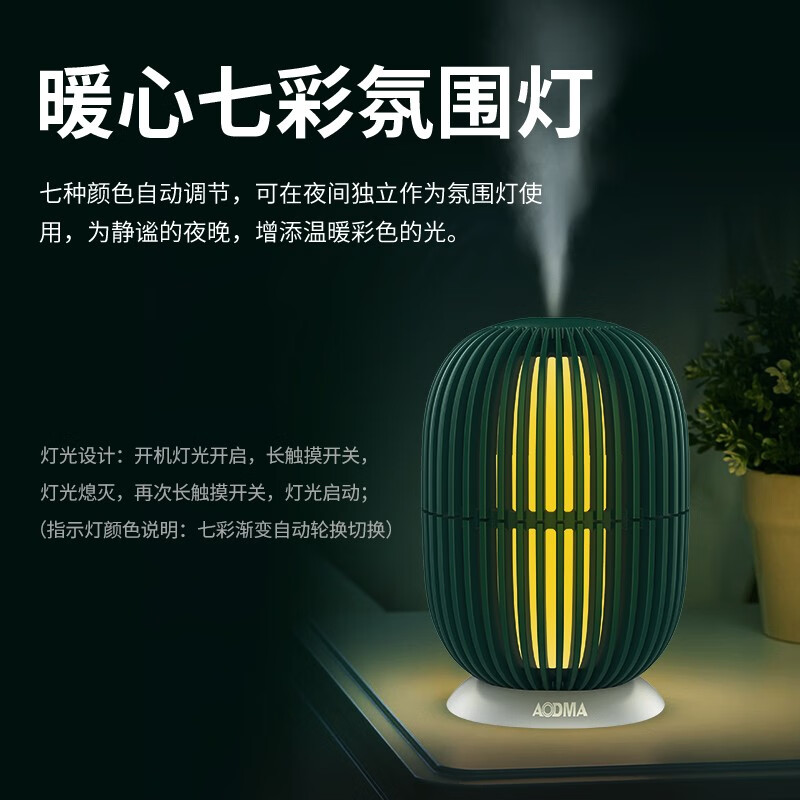 代发澳得迈(AODMA)加湿器H8 家用办公室桌面空气加湿器卧室迷你加湿器 仙人球绿色