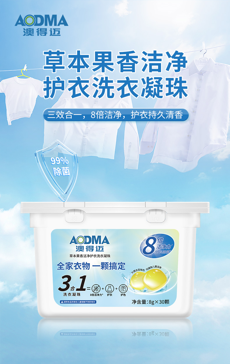 代发澳得迈草本果香洁净护衣洗衣凝珠 8gx30颗/盒 复合除螨抑菌技术 LD-118