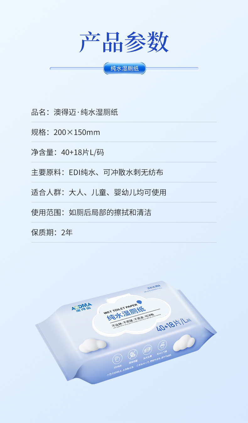 代发澳得迈洗衣机配件湿厕纸环保可降解 不堵塞马桶 WBT-01 40+18片/L码