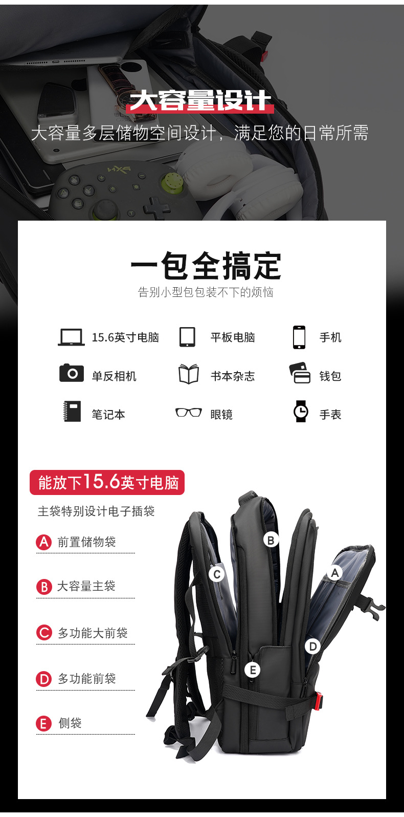当前位置:首页 > 箱包服饰 > 功能箱包 > 双肩背包/电脑包/商务包 > 贝唯思多功能大容量双肩背包旅行书包电脑包BWS736-X52