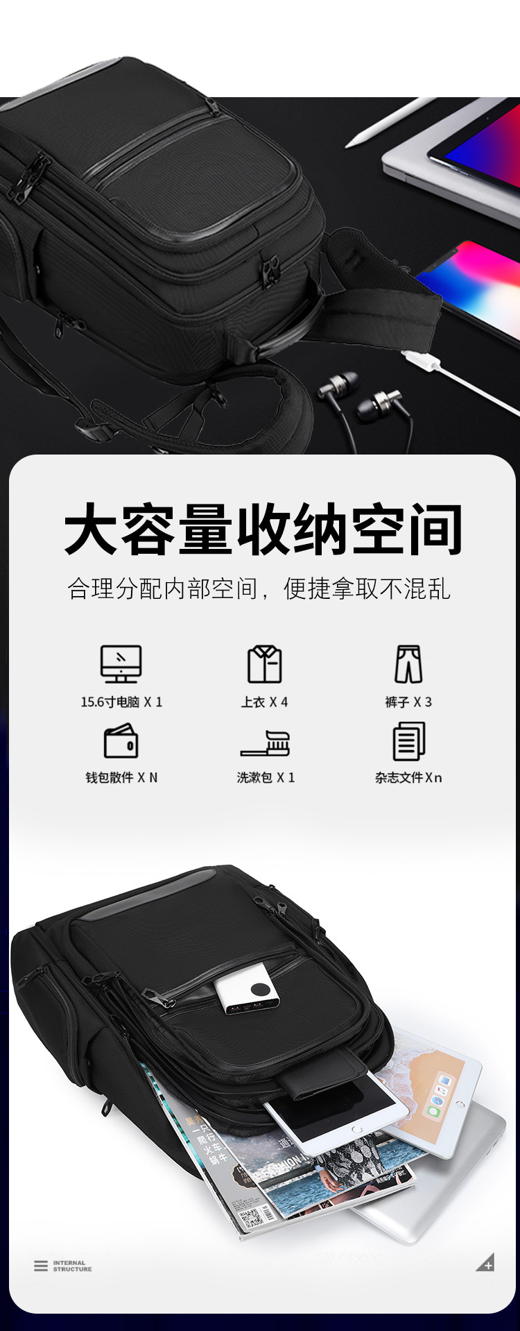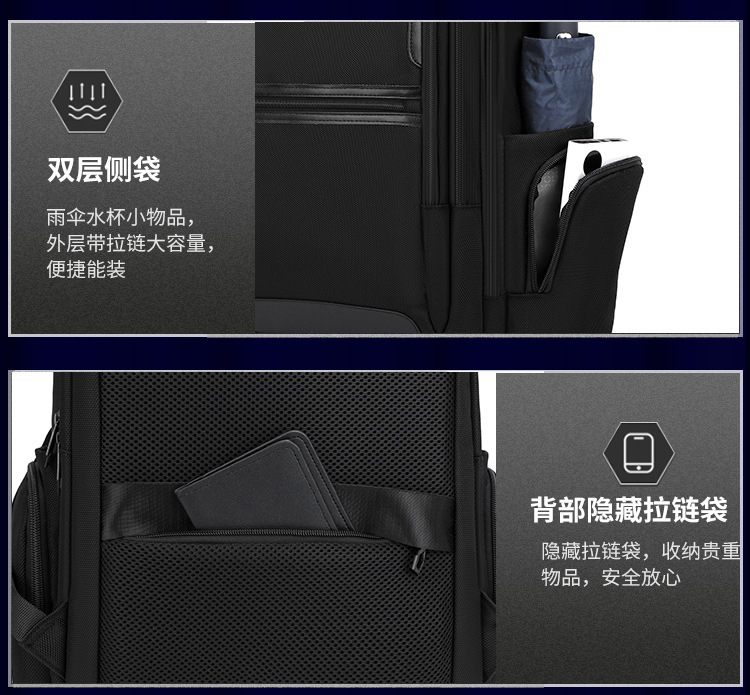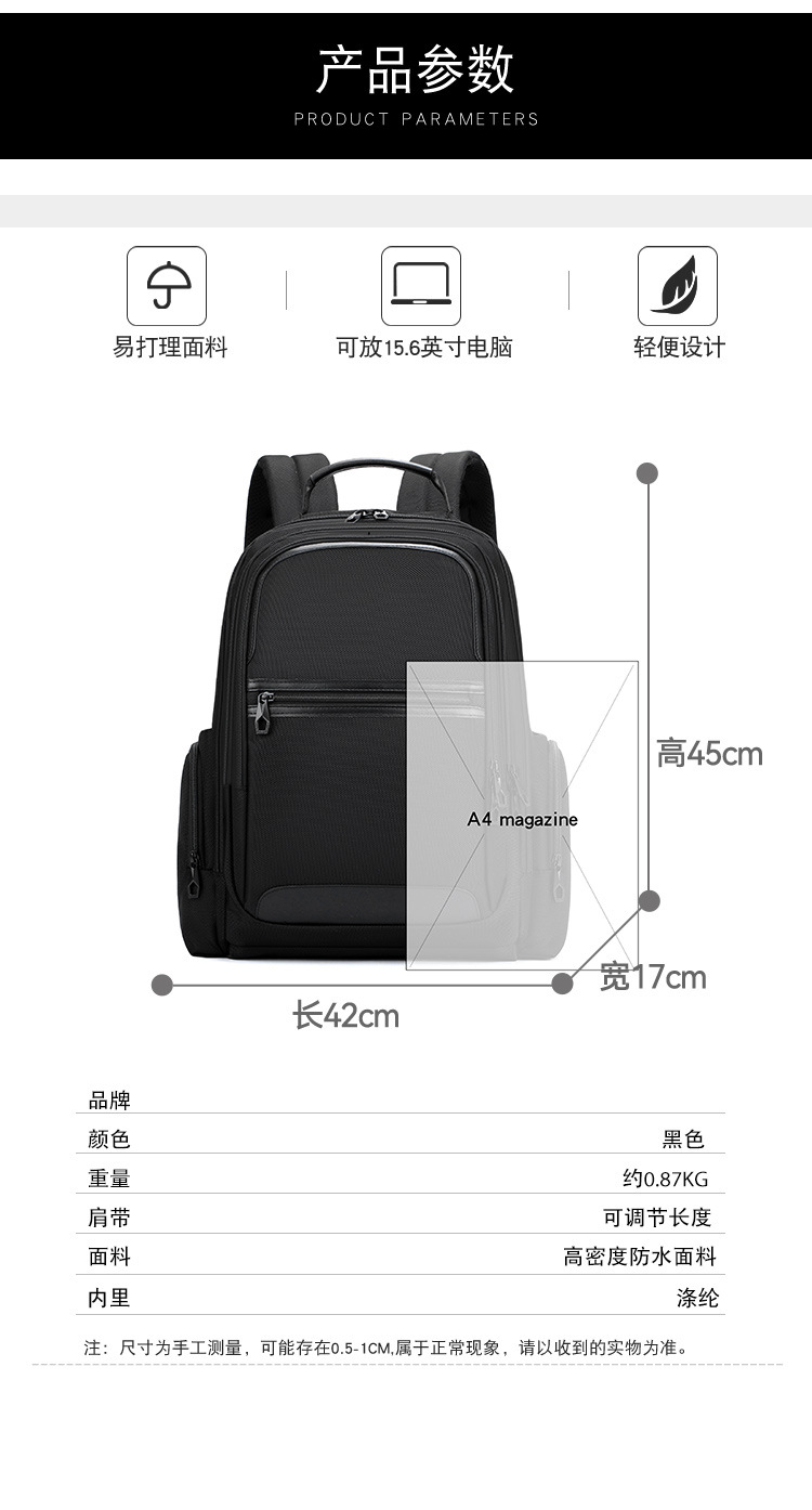 代发贝唯思双肩包男大容量商务旅行背包轻便出差BWS2521-X52 黑色