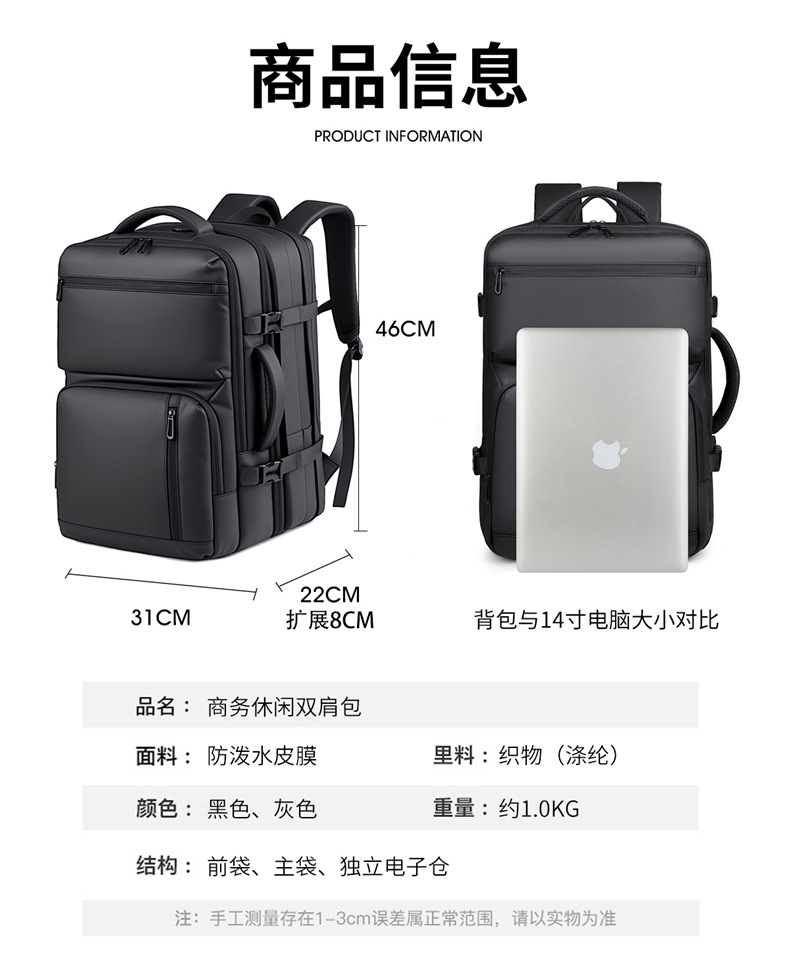 代发贝唯思多功能大容量双肩包男旅行背包轻便出差BWS905-X52