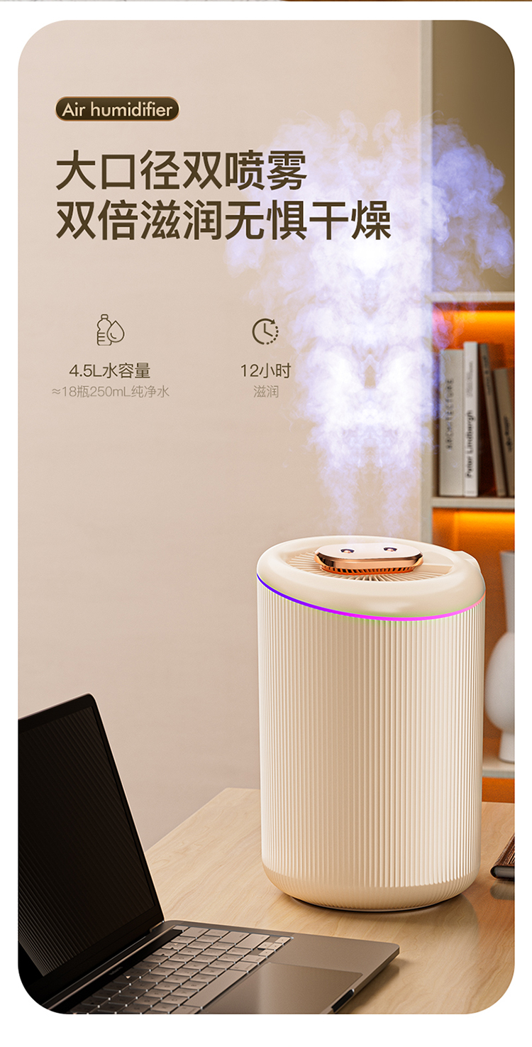 代发艾青春 办公室加湿器大容量4.5L家用静音桌面净化大雾量空气喷雾机 N8