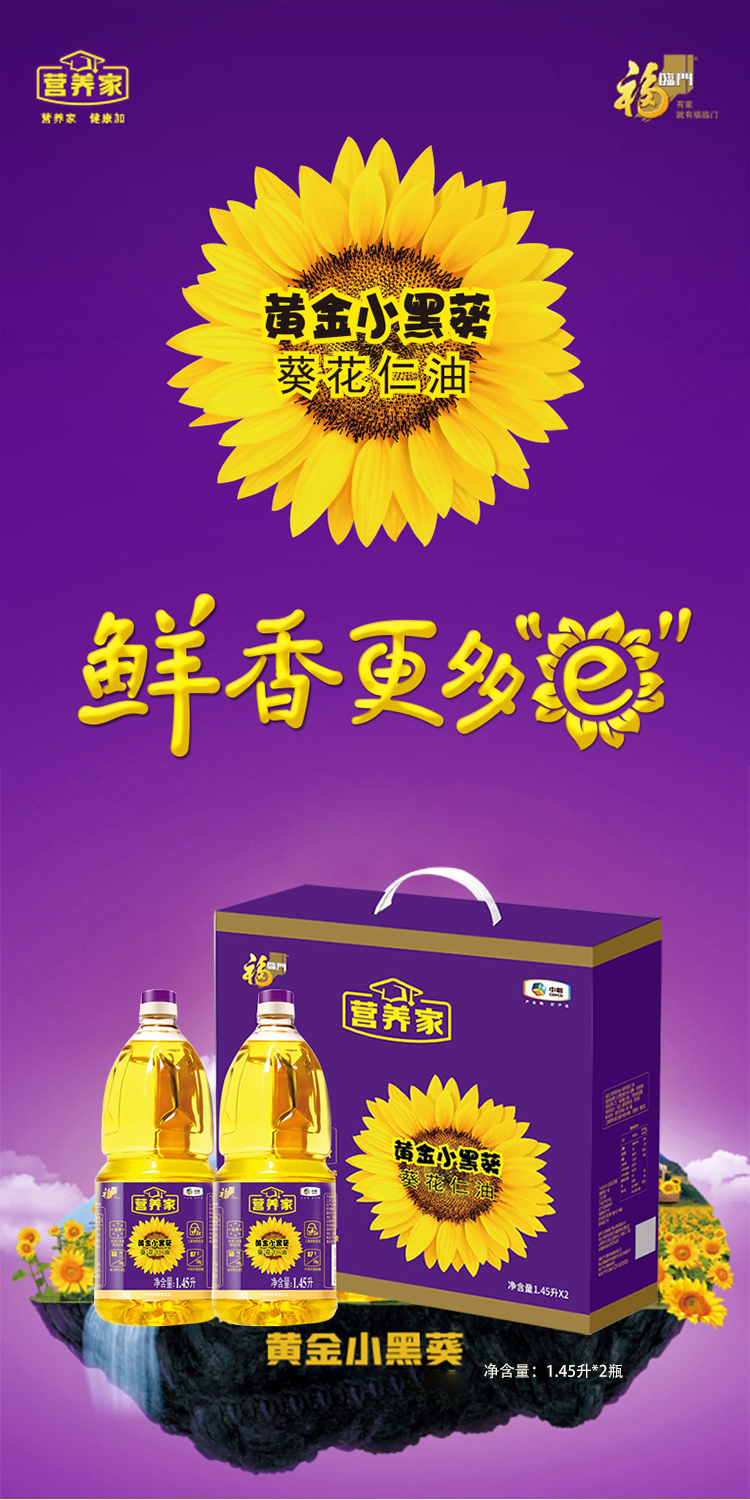 代发中粮福临门营养家黄金小黑葵葵花仁油礼盒1.45L*2