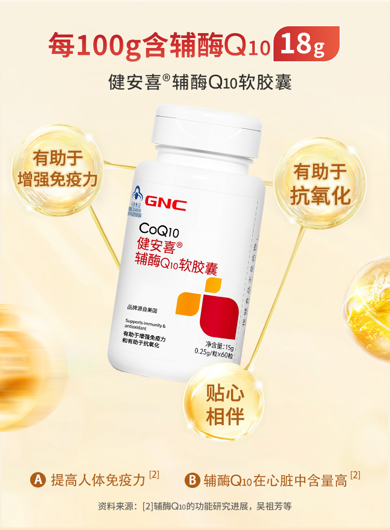 荐代发GNC健安喜 辅酶Q10软胶囊60粒