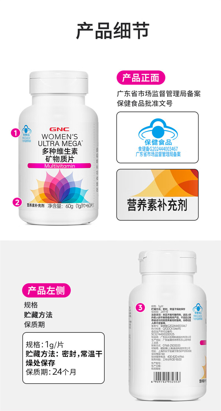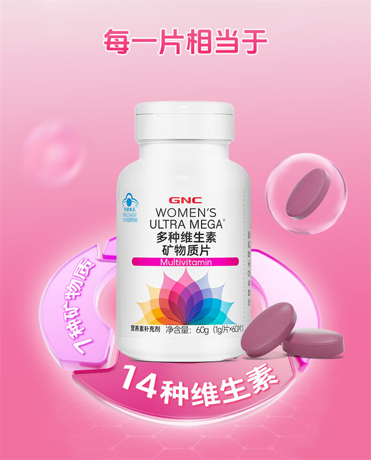荐代发GNC健安喜 多种复合维生素矿物质片(女士)60片