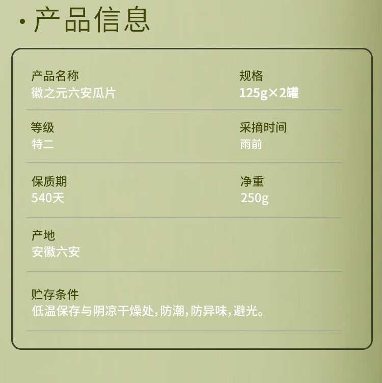 当前位置:首页 > 食品饮料 > 茗茶 > 茶叶礼盒 > 徽之元六安瓜片2025年新茶特二级雨前春茶高山有机绿茶茶叶礼盒装125g*2