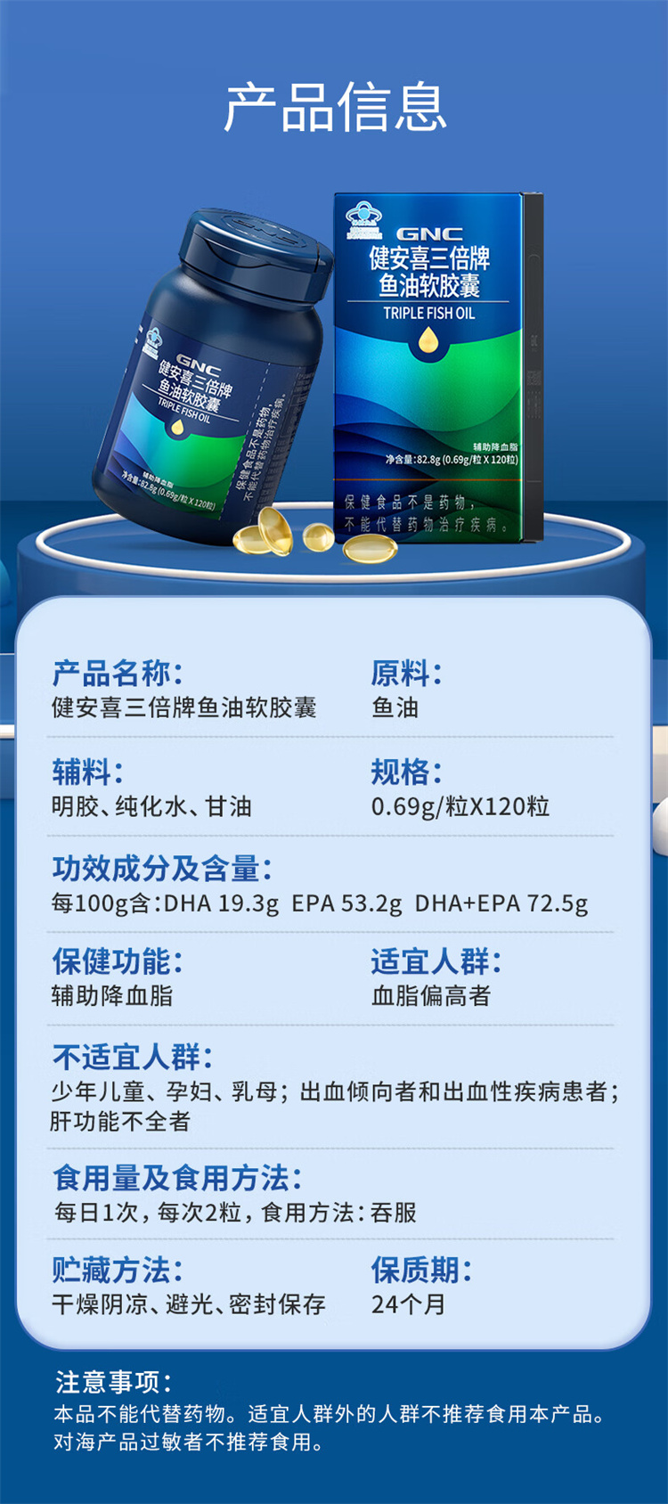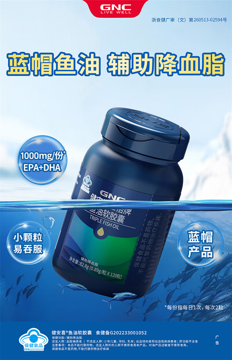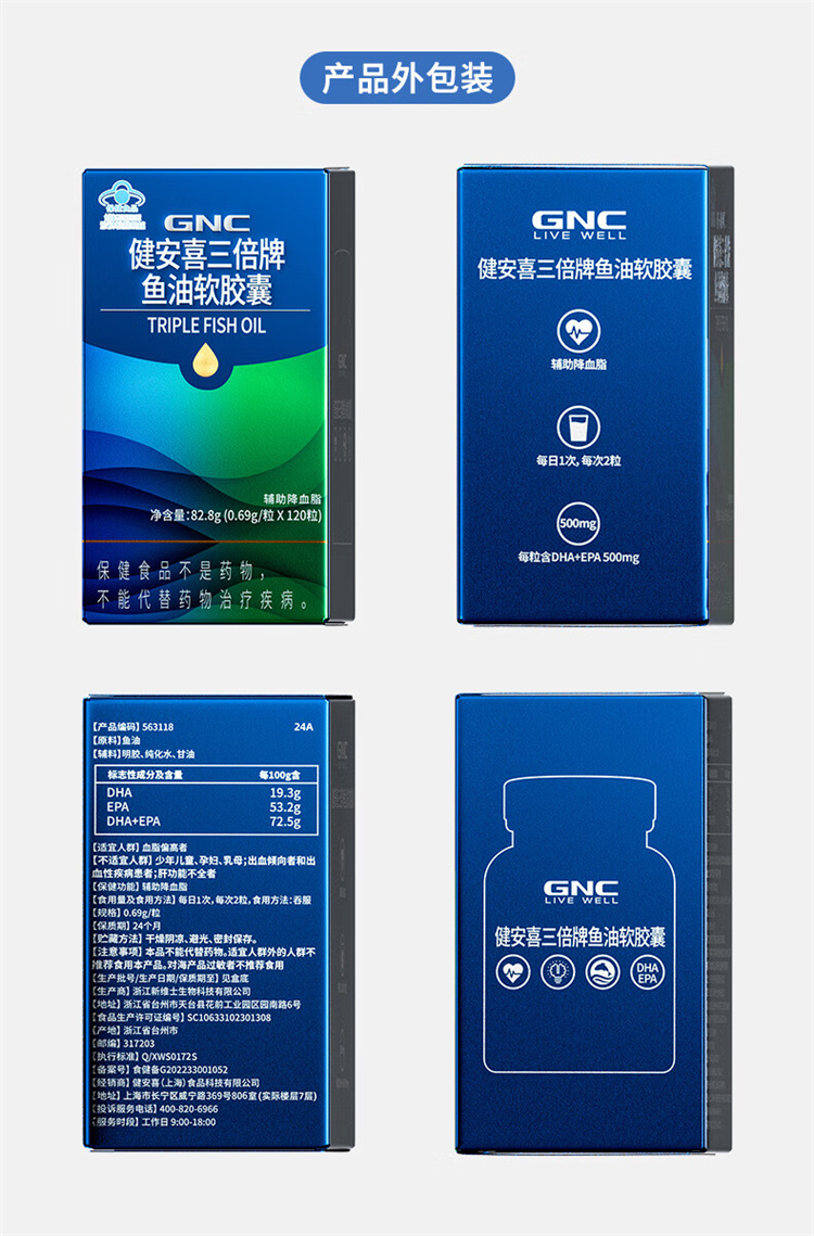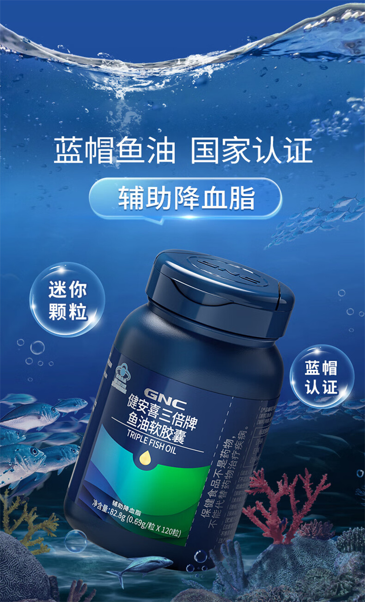 荐代发GNC健安喜 三倍深海鱼油软胶囊120粒
