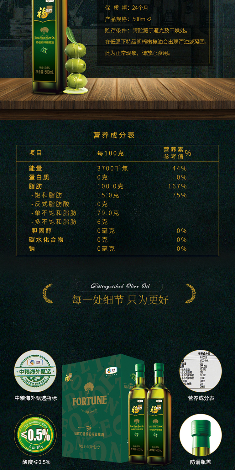 代发中粮福临门特级初榨橄榄油礼盒500ml*2