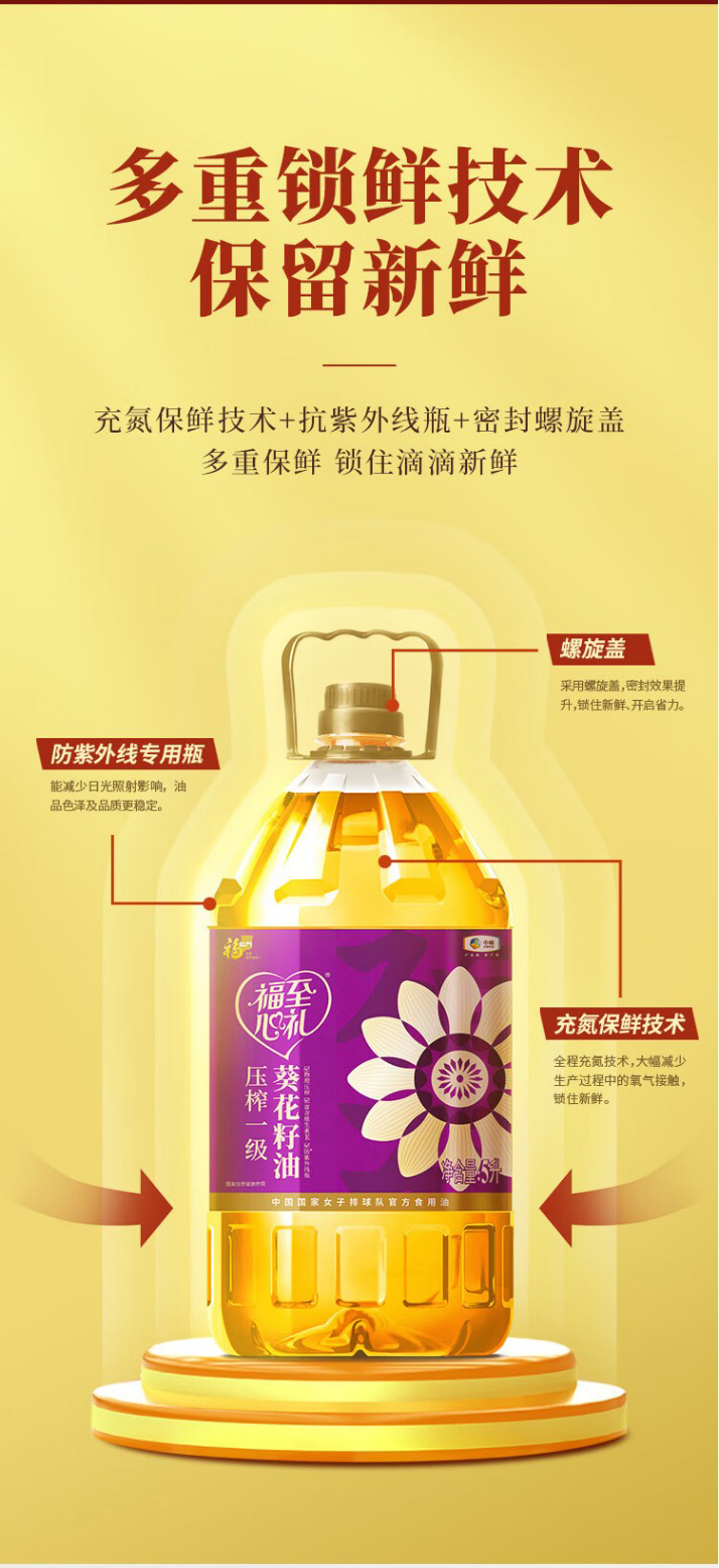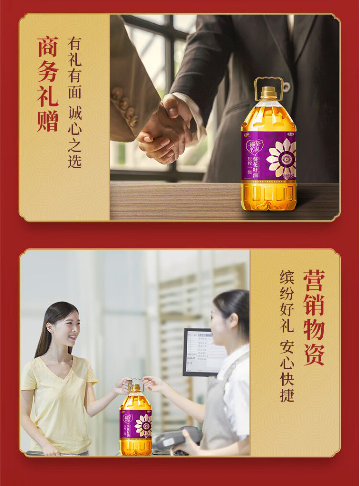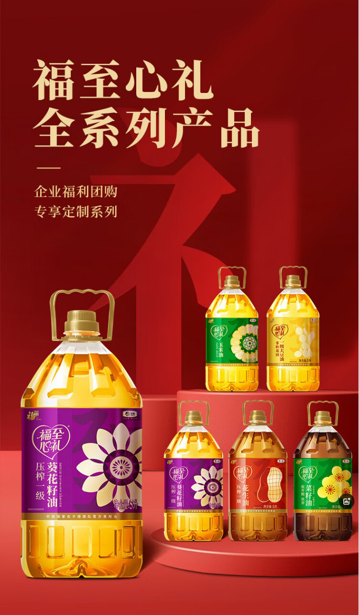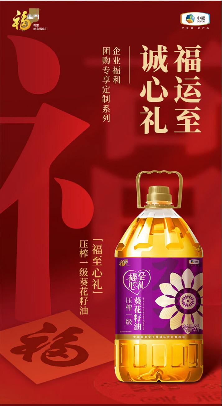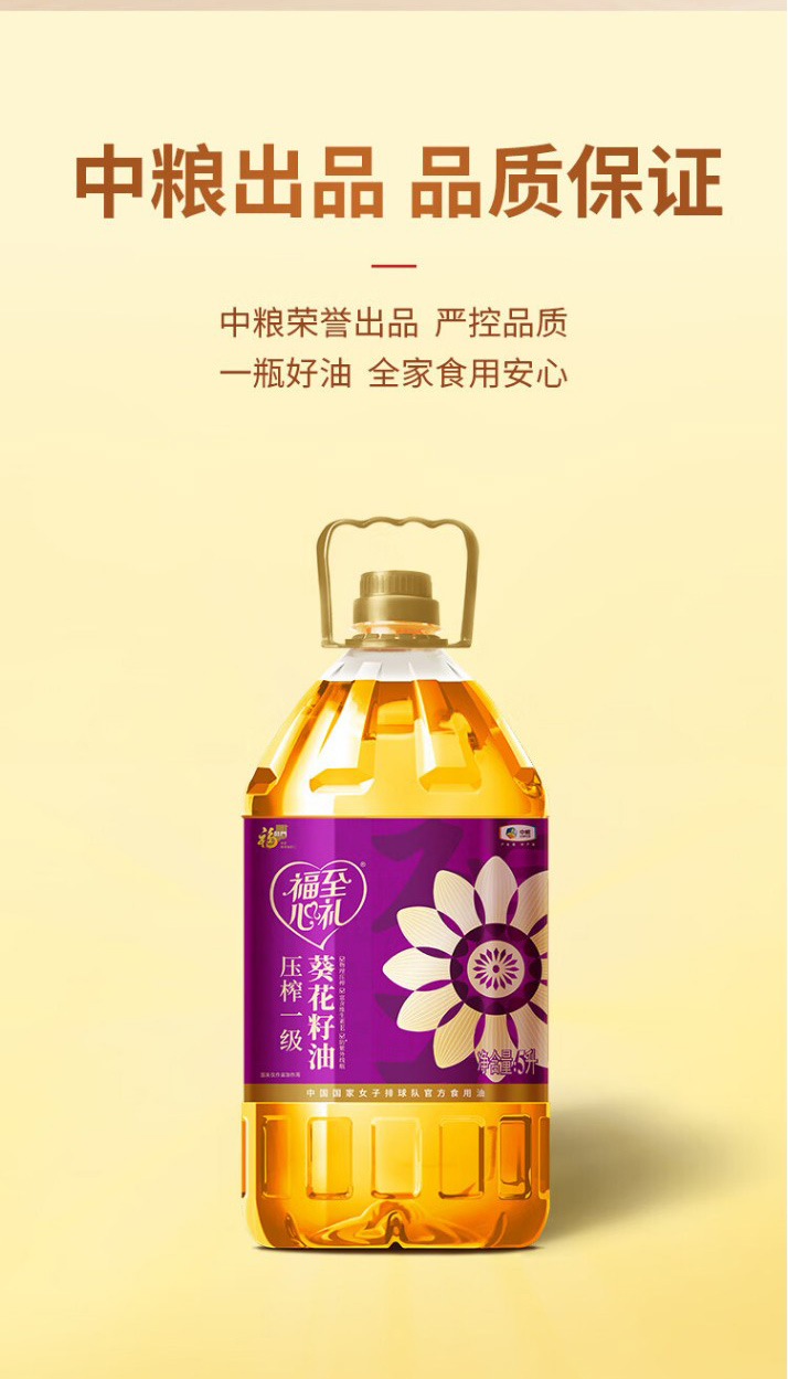 荐代发中粮福临门福至心礼压榨一级葵花籽油5L