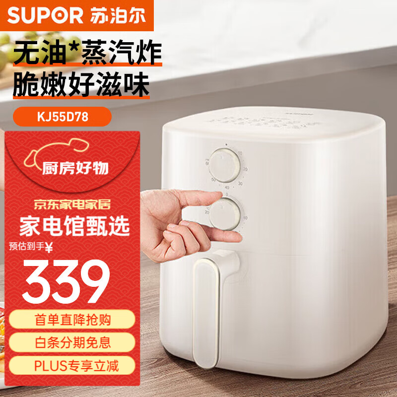 代发苏泊尔(SUPOR)空气炸锅 家用多功能 大容量 烤箱一体机 无油烟电炸锅 大功率 无油低脂煎炸锅 KJ55D78苏泊尔空气炸锅 5.5L 双旋钮控时控温蒸汽嫩炸
