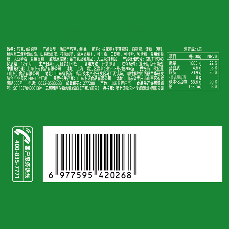 当前位置:首页 > 食品饮料 > 休闲食品 > 巧克力/糖果 > 奶龙卜珂巧克力绵绵豆60g×4盒(240克)