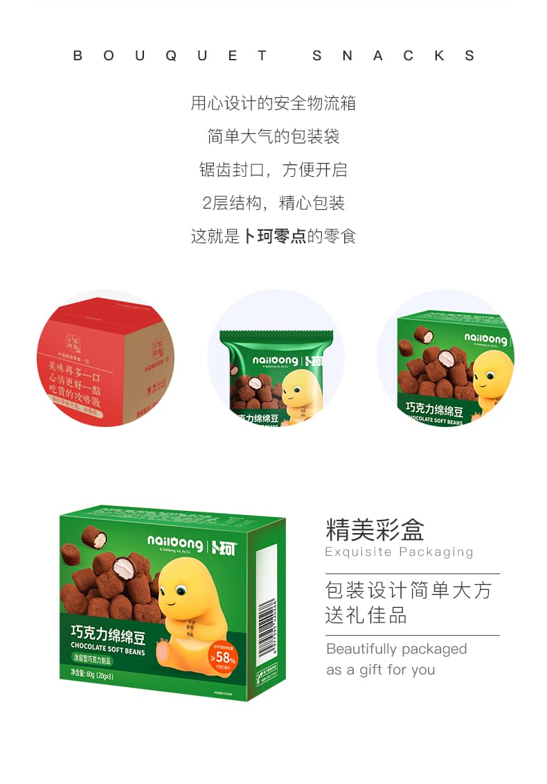 奶龙卜珂巧克力绵绵豆60g×4盒