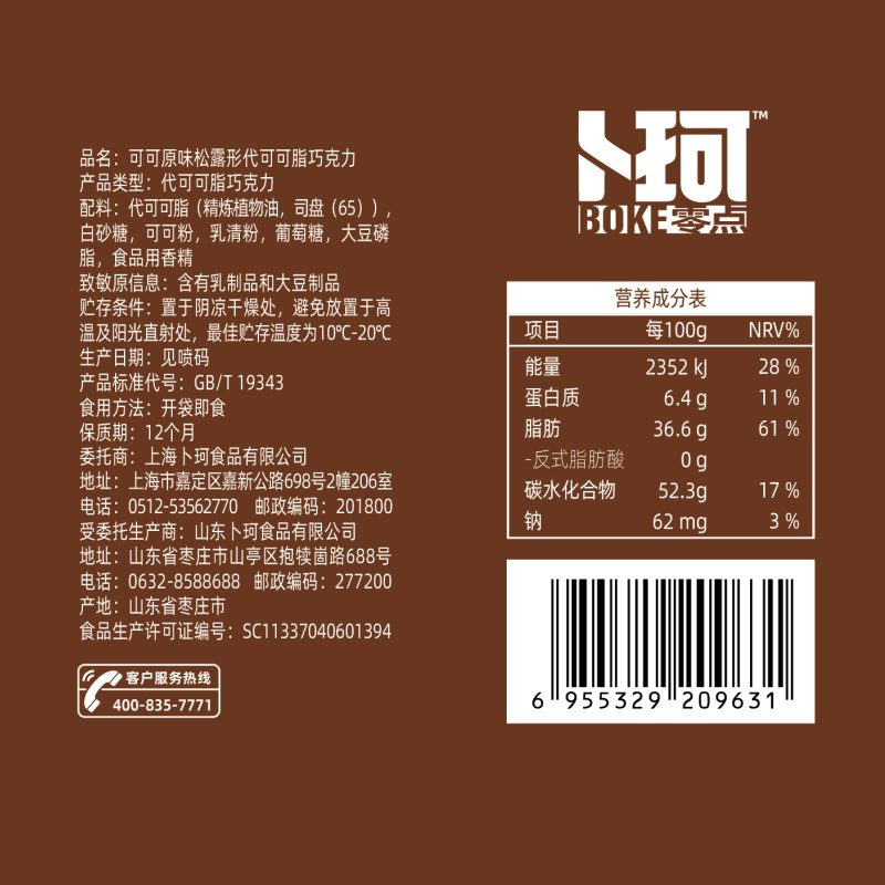 代发卜珂零点黑松露两口味装28℃两口味装(600克)
