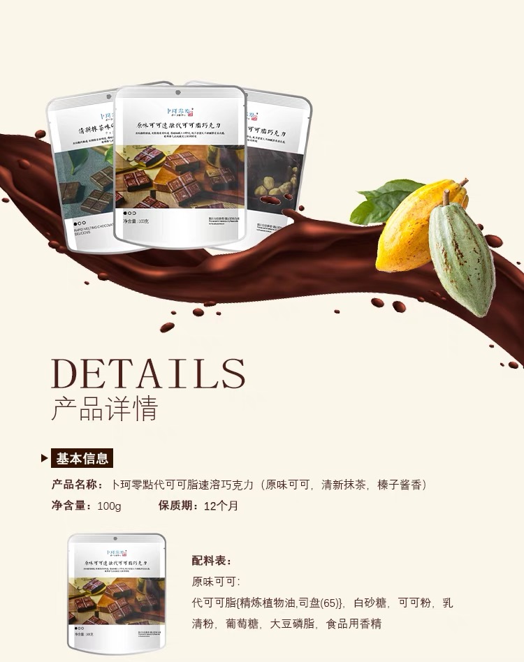代发卜珂零點速融代可可脂巧克力三口味装(600克)